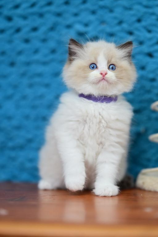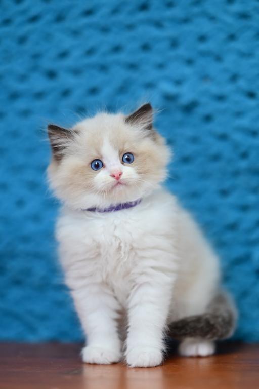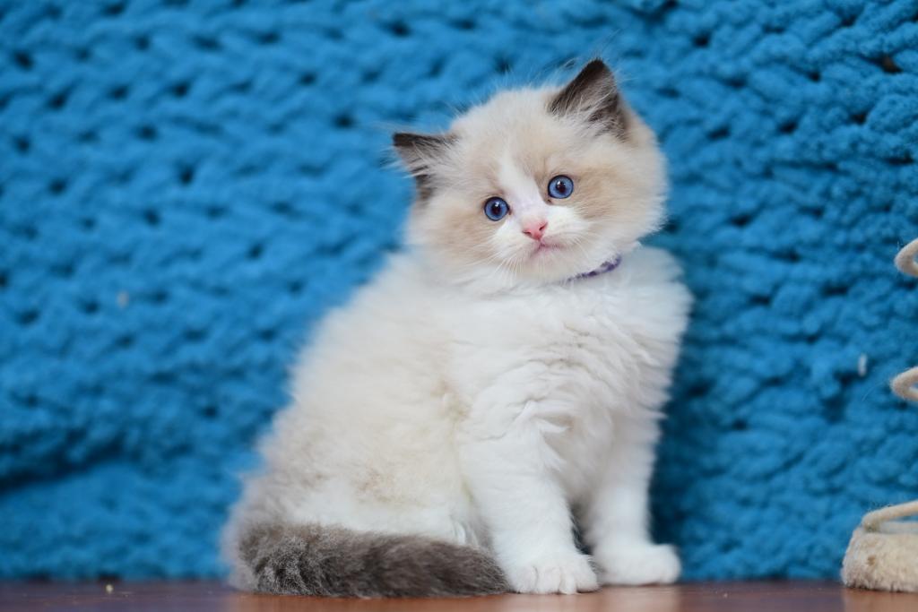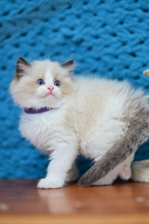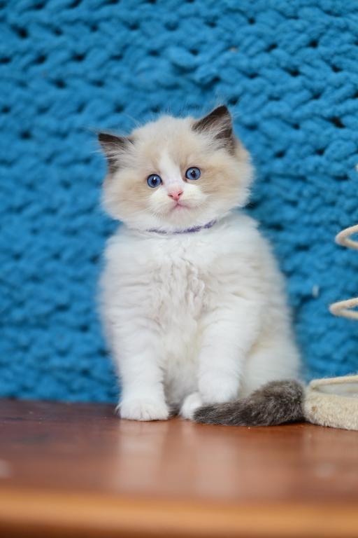 Meet Loran, a stunning Ragdoll kitten with a soft coat and striking blue eyes. This gentle and affectionate kitten is ready to become a beloved member of your family