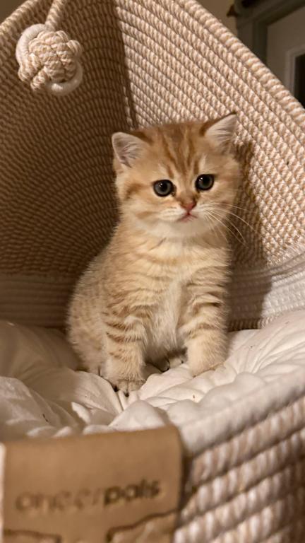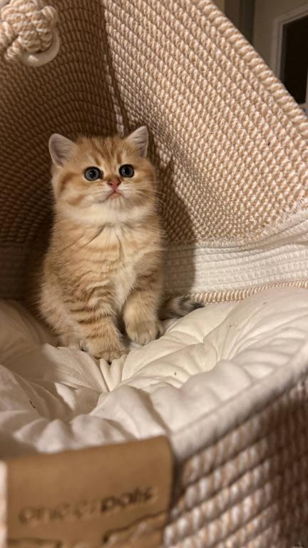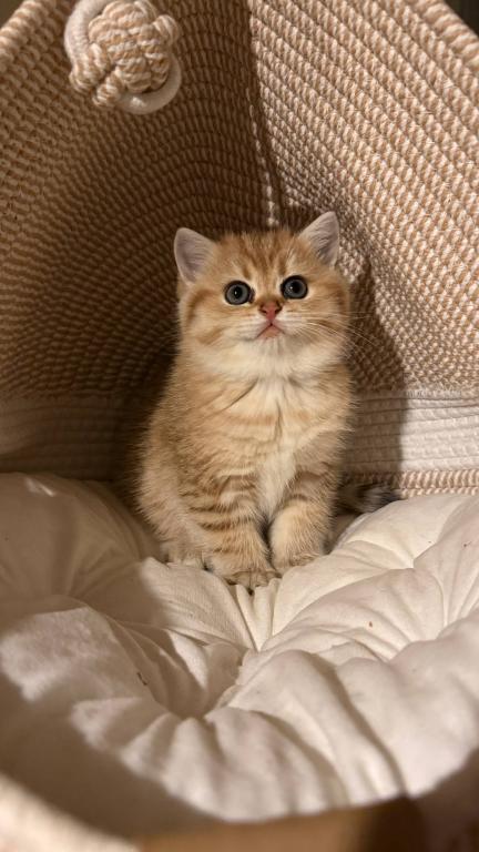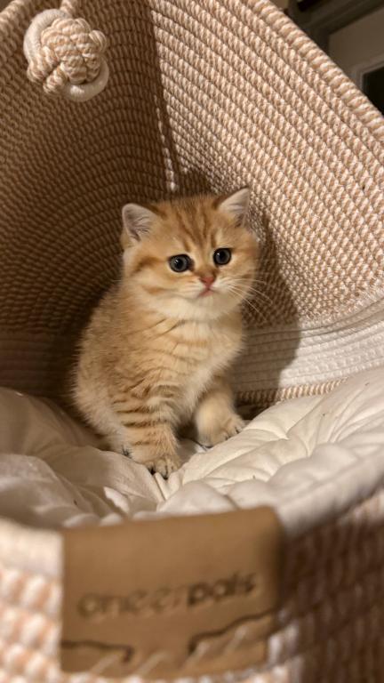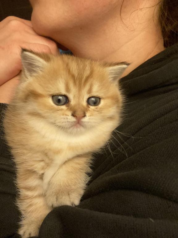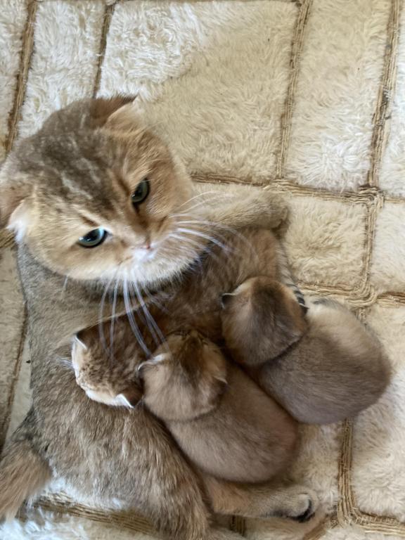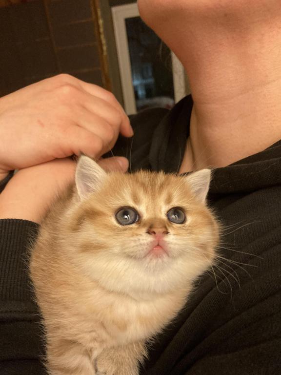 Golden Chinchilla , Scottish straight kittens ( mom with folded ears , dad with straight ears , both of parents Scottish short hairs). So playful , curious, independent , cunning.