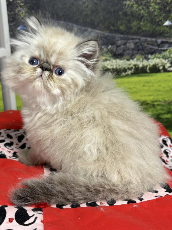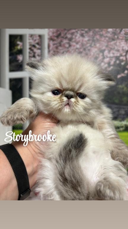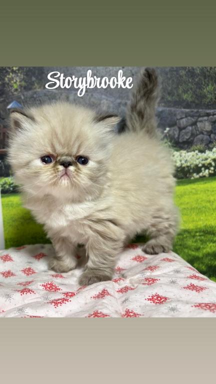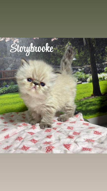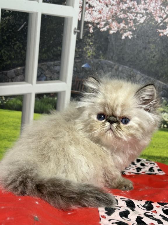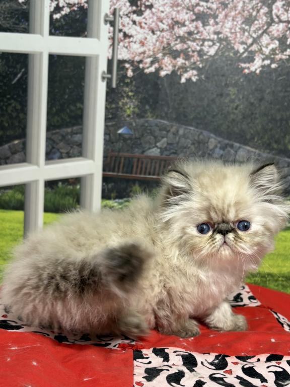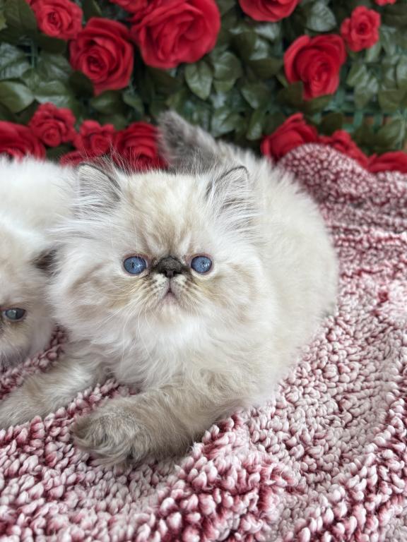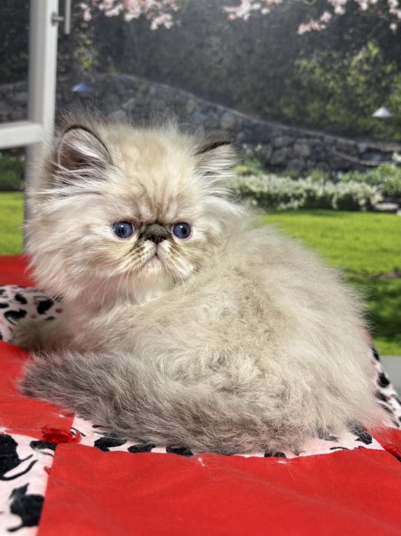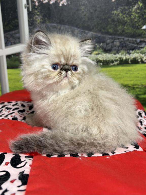 Juniper is a stunning seal lynx point Himalayan with exceptional type and eye-catching detail. Her beautifully defined lynx markings, paired with a plush, well-balanced coat, give her a striking and refined appearance. She has a sweet, expressive face with bright, clear blue eyes that truly stand out.