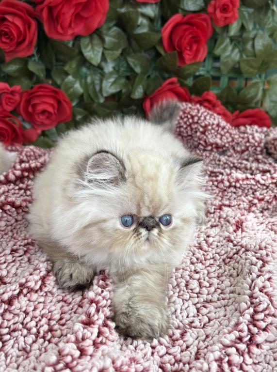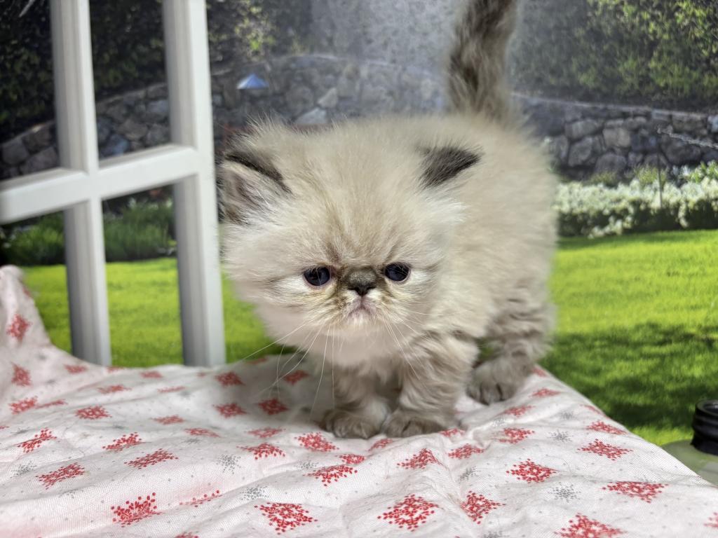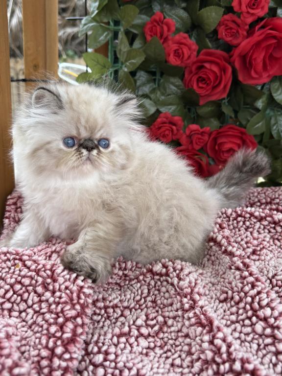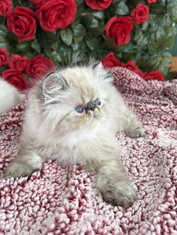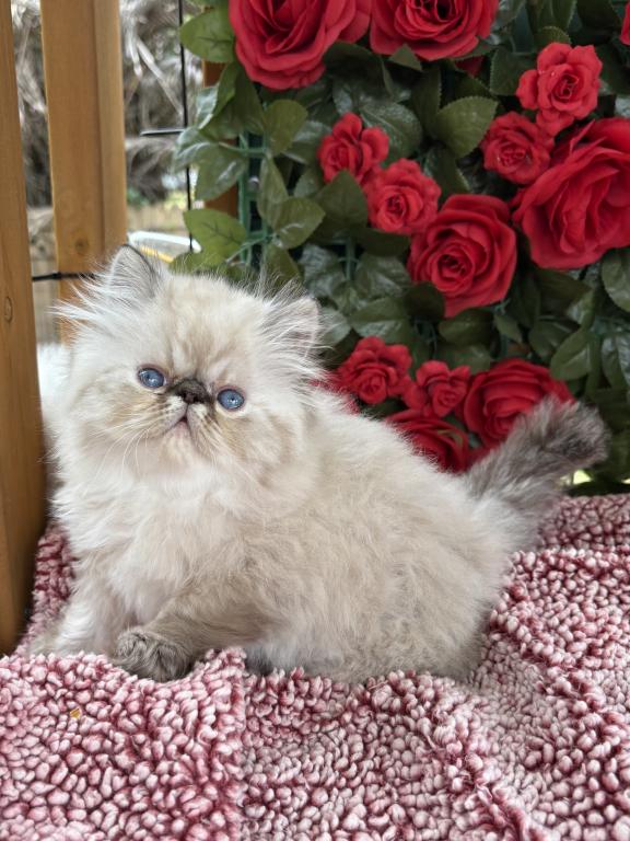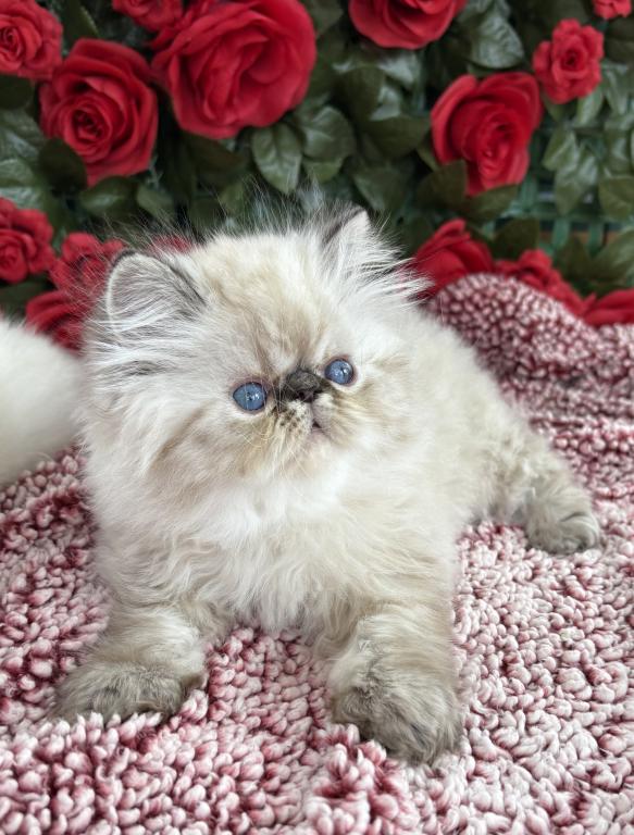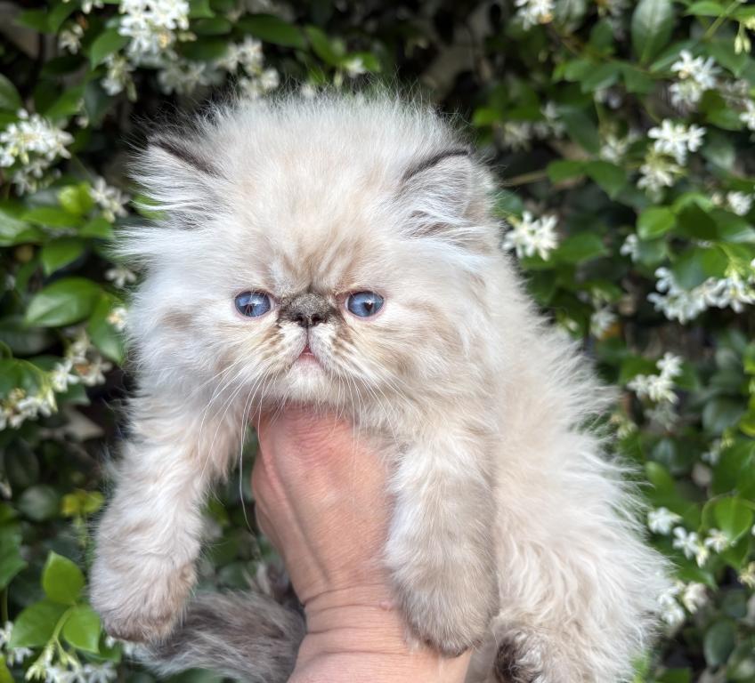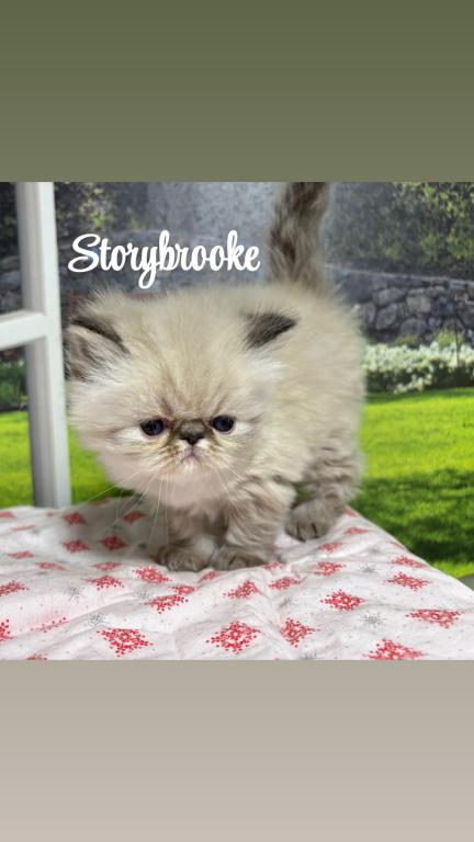 Juniper is a stunning seal lynx point Himalayan with exceptional type and eye-catching detail. Her beautifully defined lynx markings, paired with a plush, well-balanced coat, give her a striking and refined appearance. She has a sweet, expressive face with bright, clear blue eyes that truly stand out.