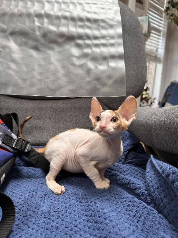 Beautiful female Cornish Rex kitten available! She comes with her first vaccinations and CFA registration.