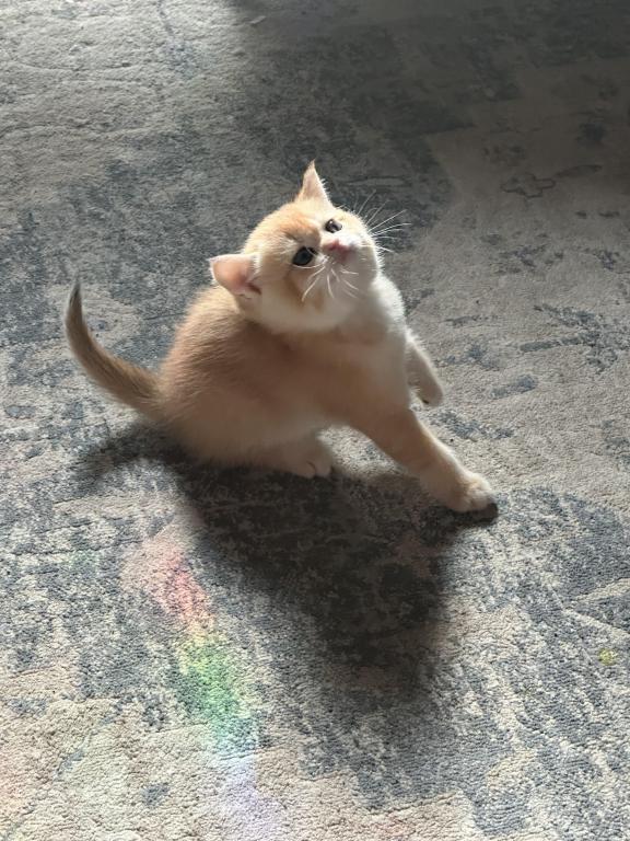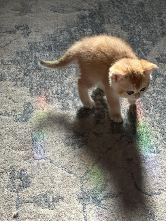 She is very playful and curious kitten, if you talk to her she will pay attention to you like she understands you! She also is very soft and fluffy!