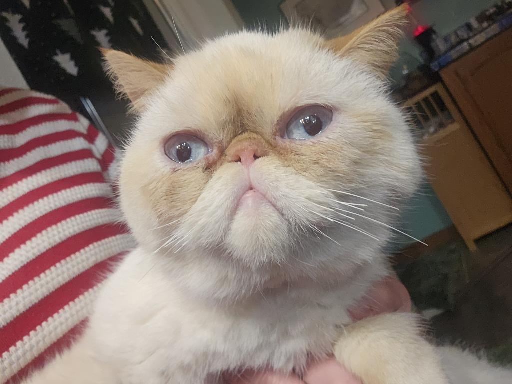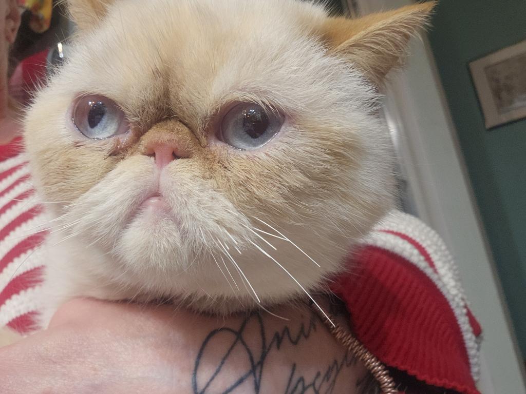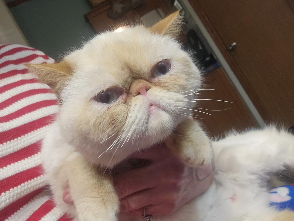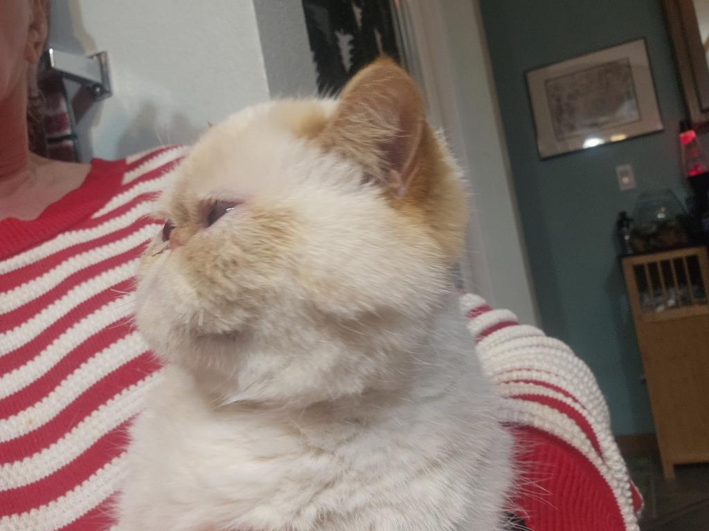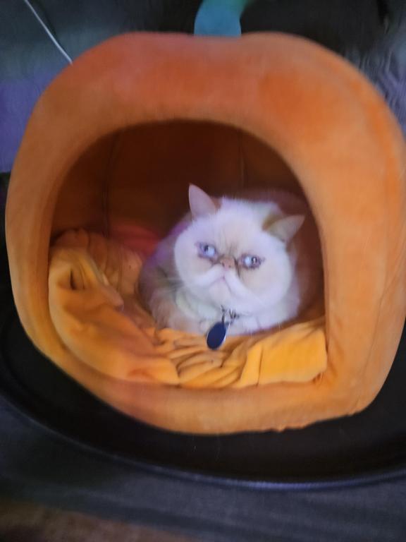 CHunky has a great personality. She is crazy, outgoing, very funny, loving. She loves her cat toys and she enjoys her hamster wheel. That is one of her a favorite toys . Its a big wheel that she can run on and it rolls when she runs. It's great exercise for her spunky attitude and zummies. She was raised with kids of all ages. She gets along with dogs, othe cats and birds too! She loves her humans and will follow you around. She is the life of the party and when guests come over, She is a very social cat. She likes to ride in the car. She does very well in the vehicle when we take her on trips. Chunky thinks she is a human and likes to sleep with you at night.