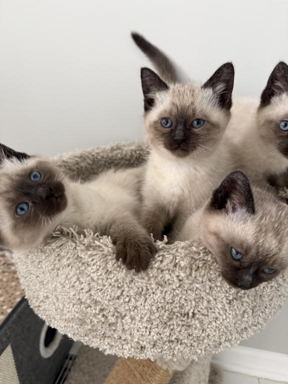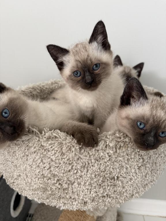 I have three full seal point Siamese males available now! Social and friendly handled daily not hiders . Good with kids and other cats .Laid back and like to be held. Very smart breed .Good for allergies. They are using the litter box and eating wet and dry food. Big dark blue eyes ,easy to maintain coat . Everyone tells me how friendly my kittens are and how great they are with kids.No deposit needed.Can face time?Message me if interested? 847-254-2166 Update just one available.