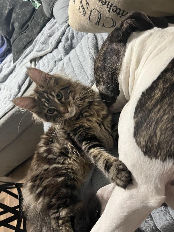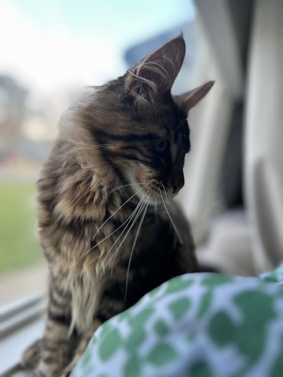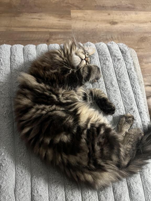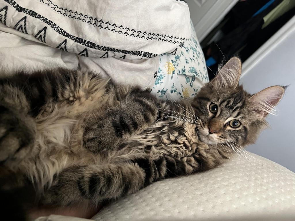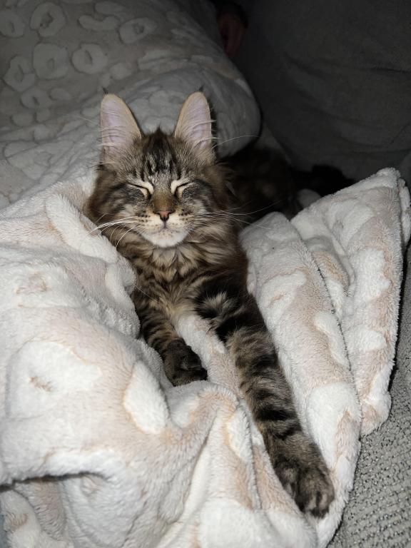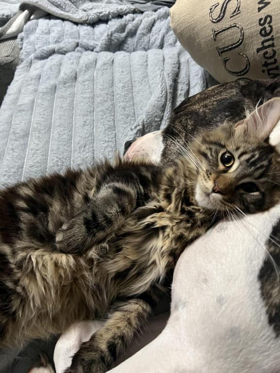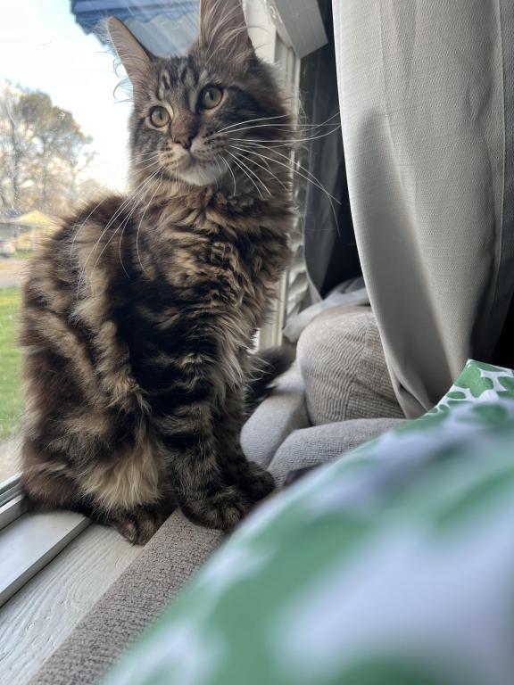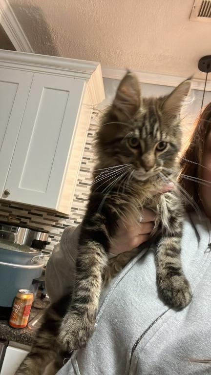 He’s playful, curious, and already showing the classic Maine Coon traits—intelligent, friendly, and loyal. Whether he’s chasing toys or curling up next to you, he brings so much joy and companionship.