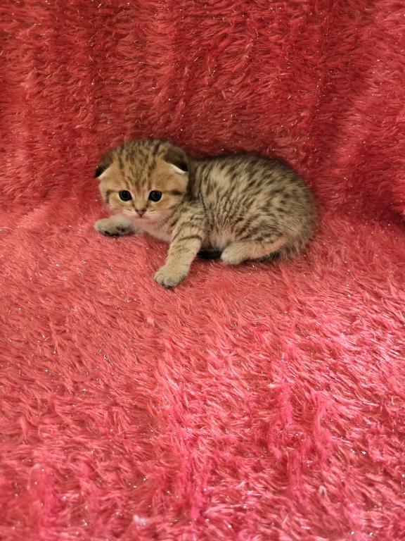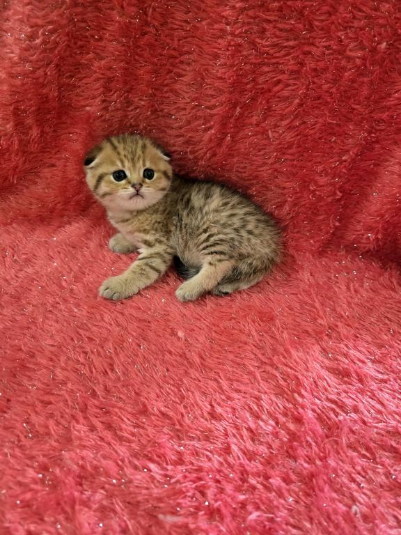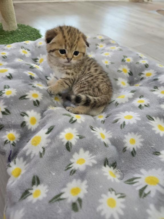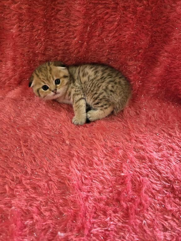 Adorable Scottish Fold Male looking for his forever loving home. D.O.B. 03/07/2026. Ready to go after May 2nd. Raised in a loving home environment, he is very playful and friendly. Parents are TICA registered with champion bloodlines. He will be litter trained and come with first vaccinations and dewormings.