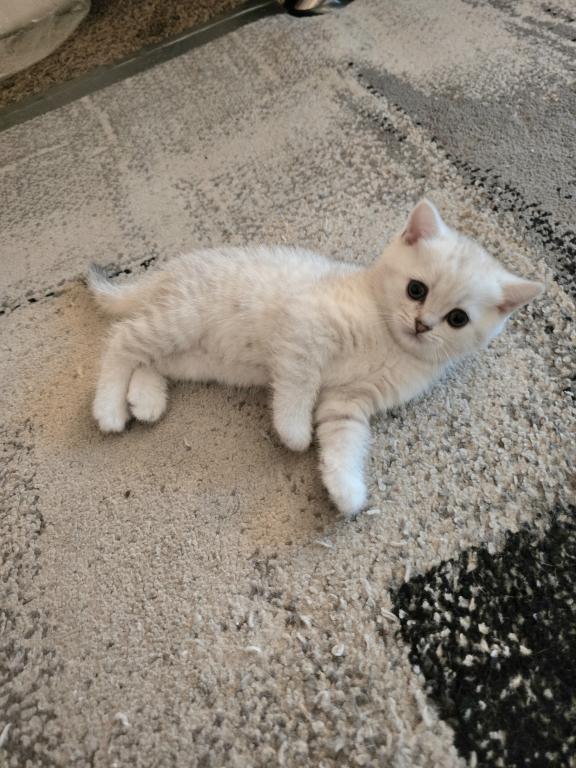 Adorable Scottish Straight female looking for her forever loving home. D.O.B. 02/24/2026. Ready to go after April 24th. Raised in a loving home environment, she is very playful and friendly.She will be litter trained and come with her first vaccinations and dewormings. If interested, please text or call