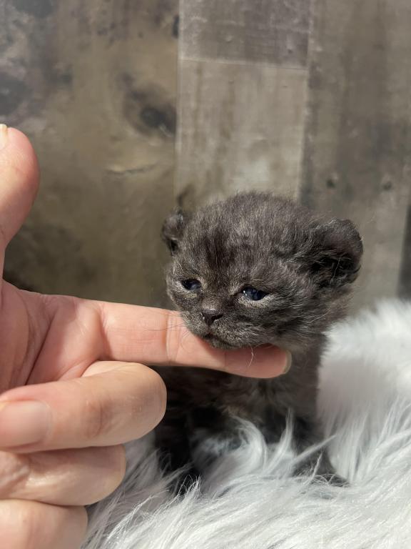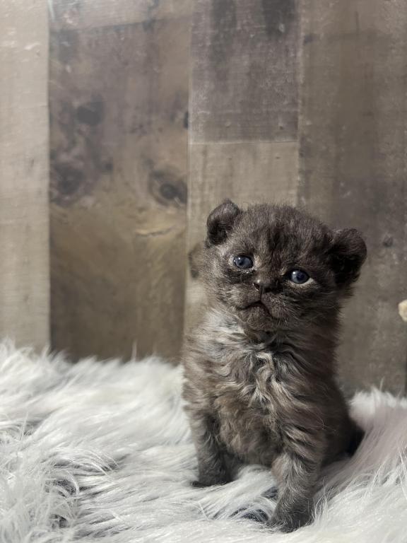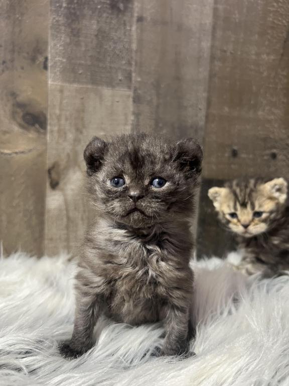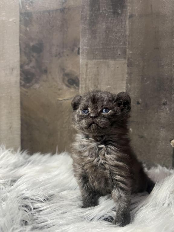 Highland mohave lynx girl with curled ears and fur , straight feet , no tail.