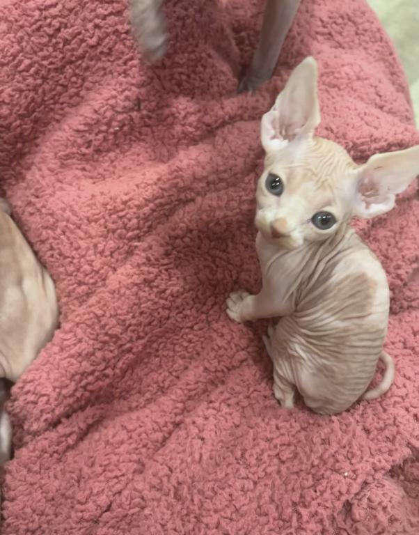 Perfect for someone looking for a loving, interactive pet with a big personality in a tiny body. These kittens are super affectionate, playful, and very people-oriented—typical sphynx personalities.