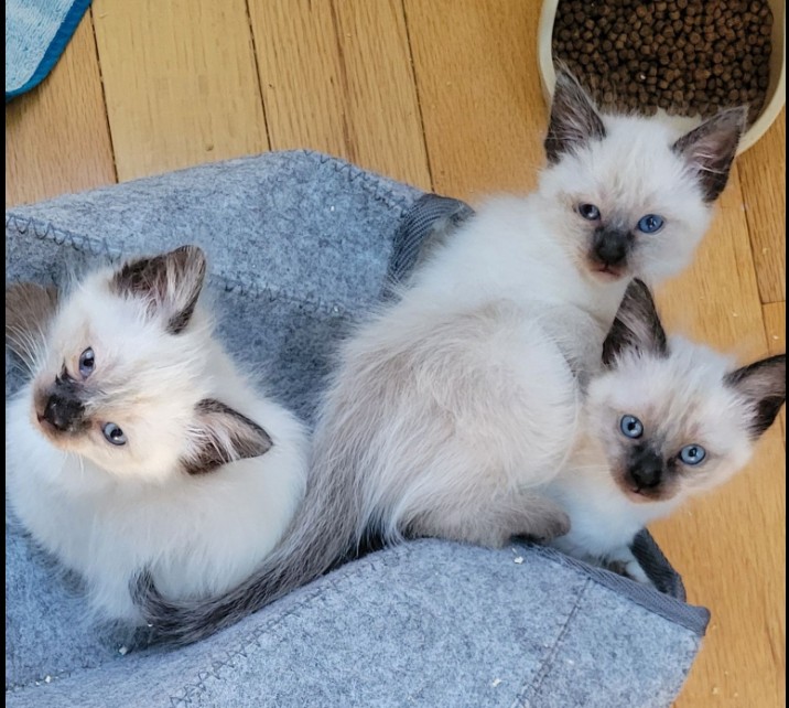 UPDATE- 2 left, both seal point male and female. These 3 will med-long hair. Dad is a CFF registered Silky Balinese, Mom is seal point Siamese that carries gene for long hair. There is one short hair Siamese from the litter that is reserved. These cuties are ready to go home end of April. 1 seal boy , 1 seal girl and 1 choc boy. still trying to get good pictures of them, they don't keep still when they are awake.