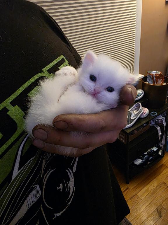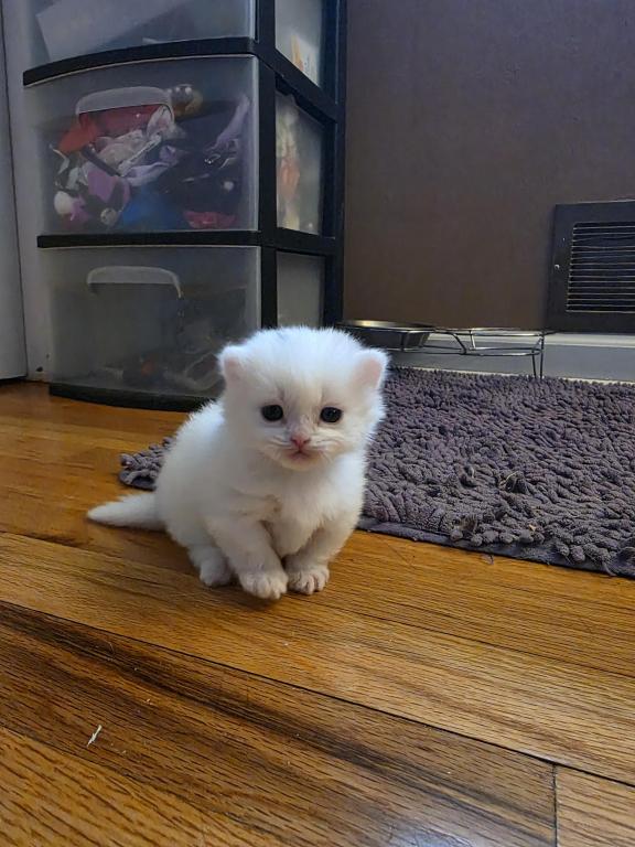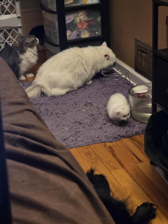 Sprinkle lives with a small child,dogs, bunnies, and another cat that isn't mom and dad. All cats are indoor only and fully vaccinated, including FeLv vaccinated. My daughter named him due to the one "sprinkle" of gray from mom on his head.