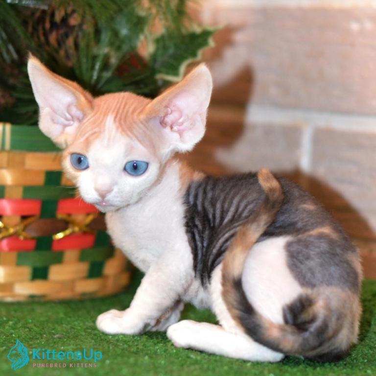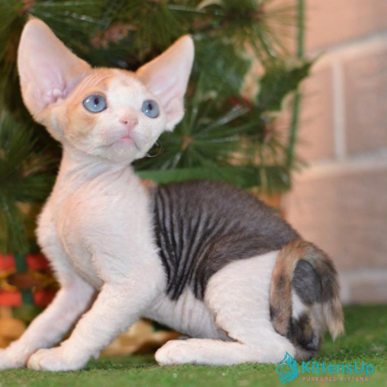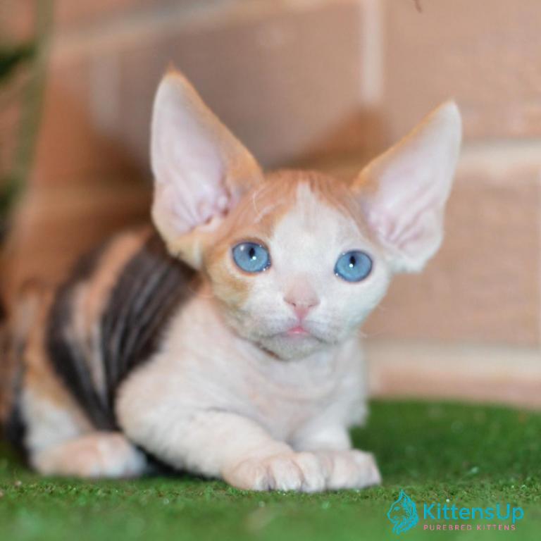 Meet Romashka, an adorable Devon Rex kitten with a unique short coat and big expressive eyes. This playful and affectionate kitten is ready to bring joy and charm into your home.