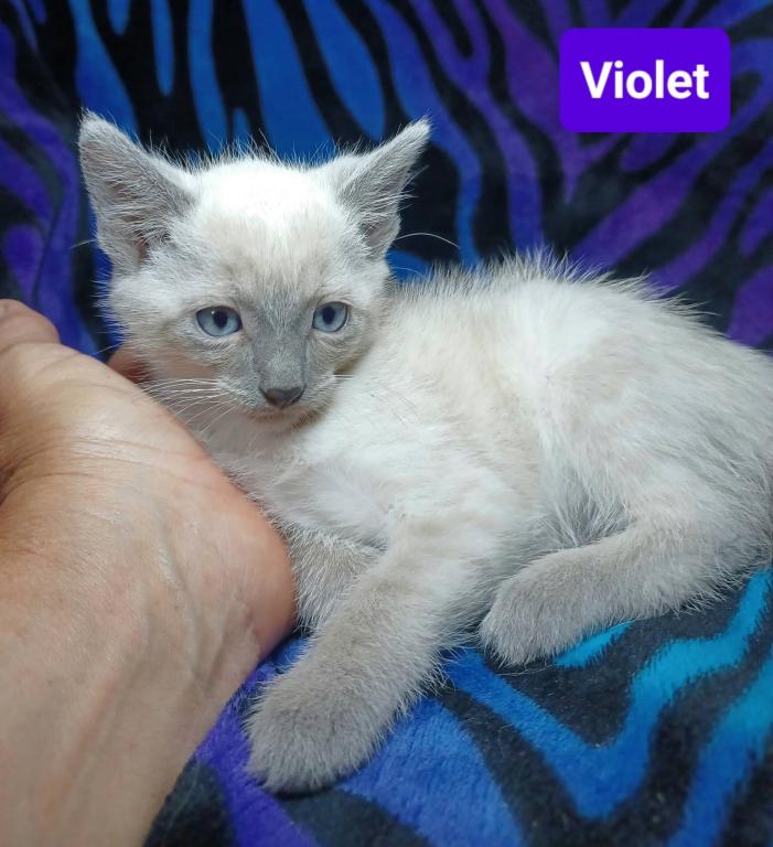 Kitten has had vet exam, vaccinations, and dewormings. Comes with her vet paperwork, dry and wer food, and a blanket that smells like mom.