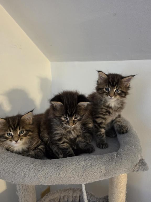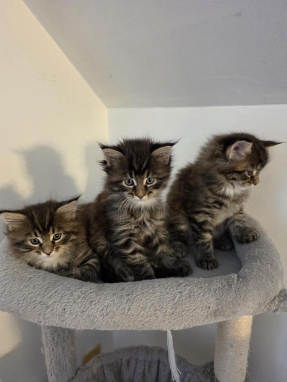 Kittens are fully eating on their own, litter trained and roaming our home with a large 90lb boxer sibling. They are well socialized and used to every day household noises.