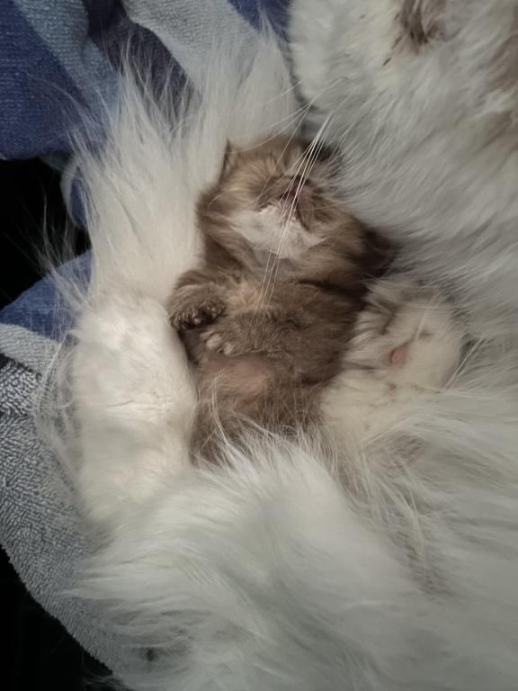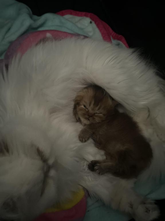 Kitten will come with first set of shots, small bag of food, as well as a baby blanket that smells like mom to ease transition to new home.