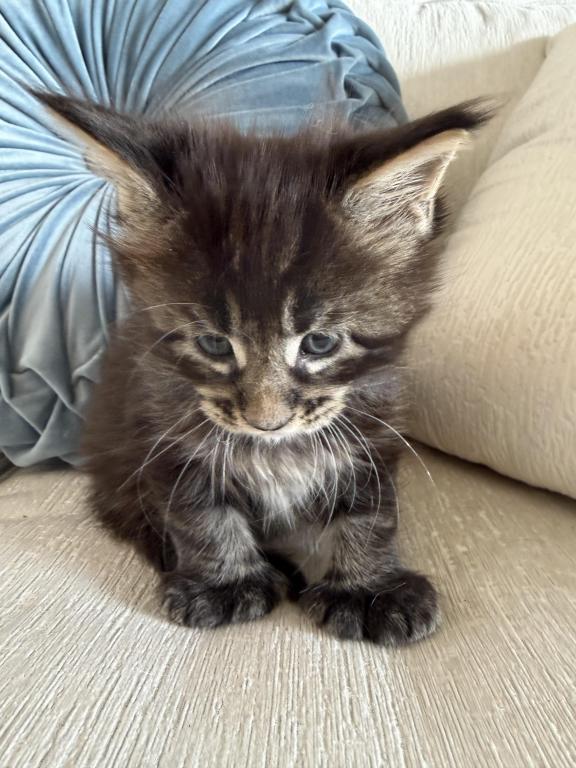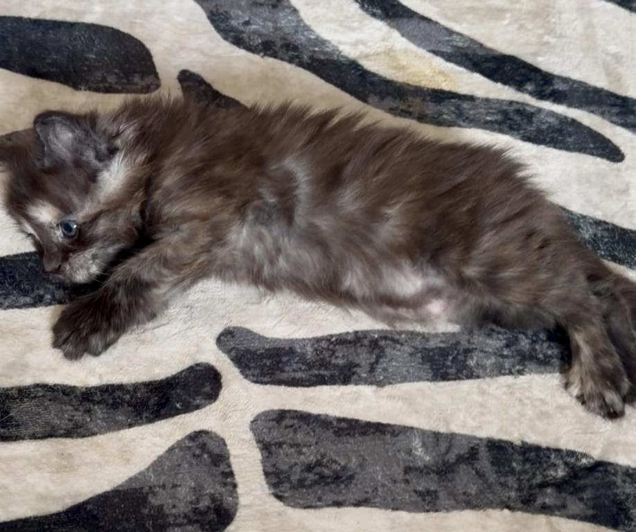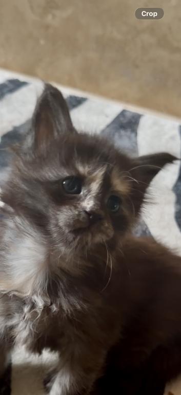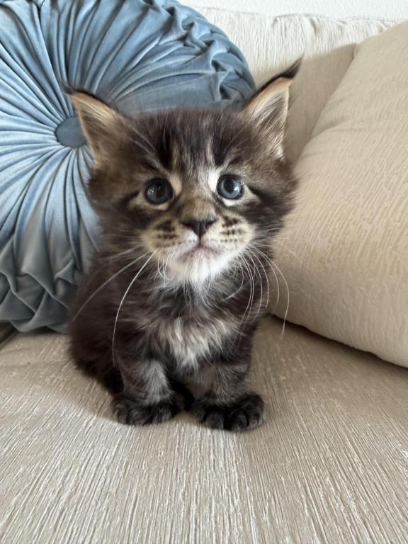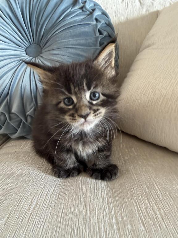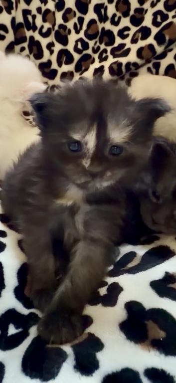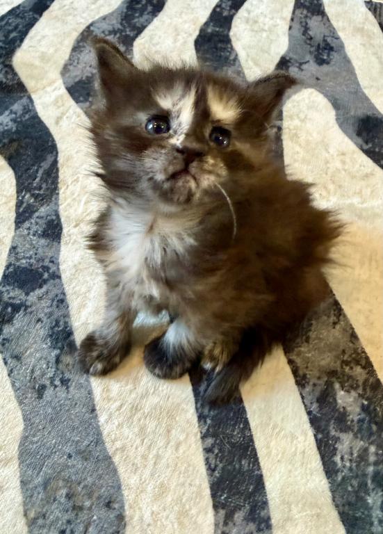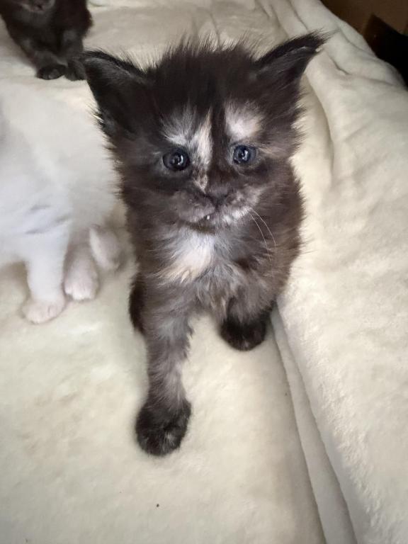 Gorgeous rare tortie smoked female, born of European champion bloodlines. Her weight has already exceeded average measurements. She is going to be very large!