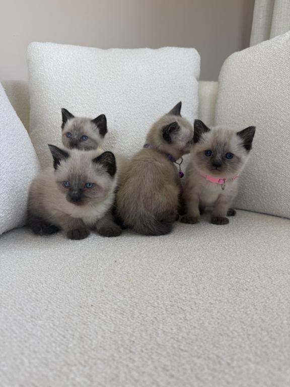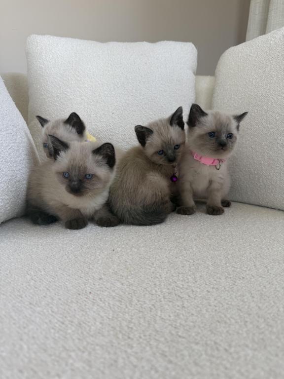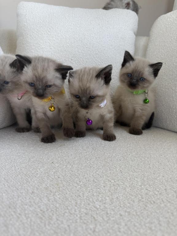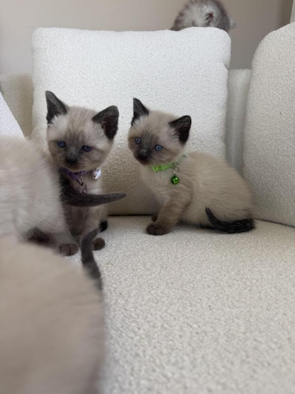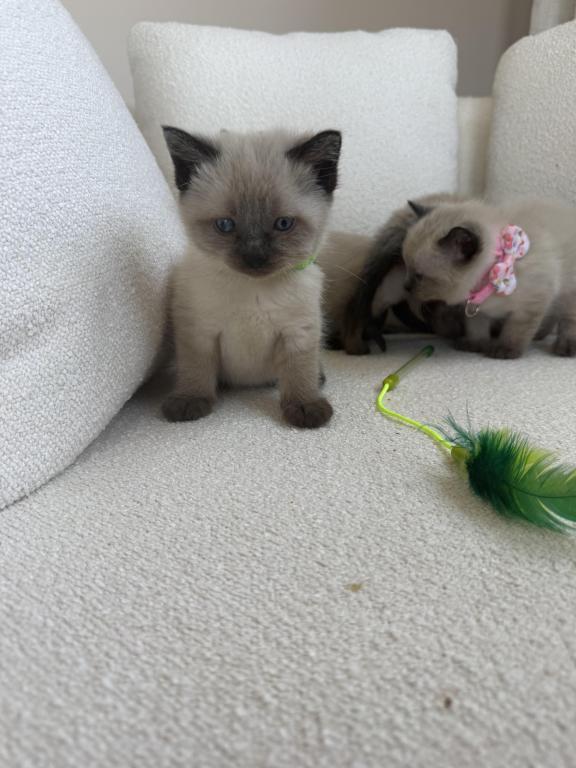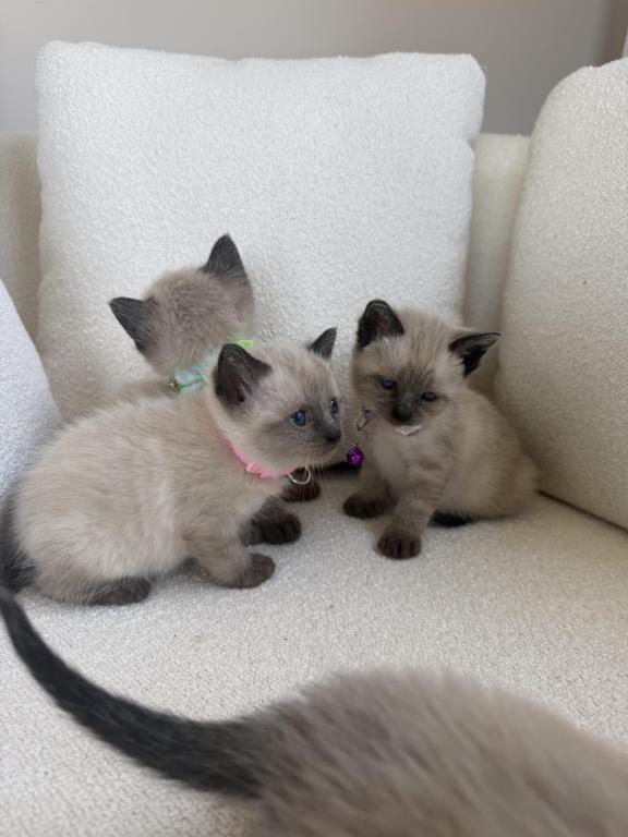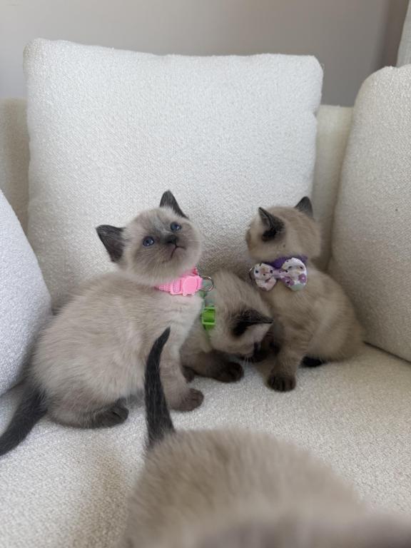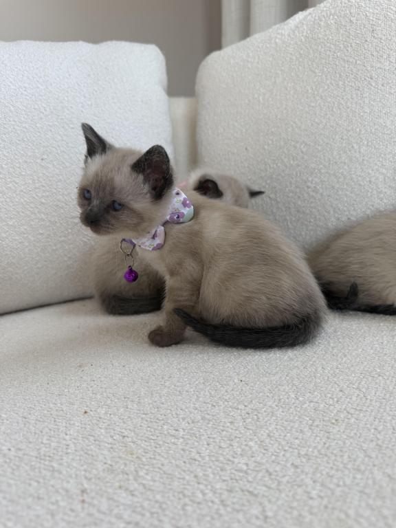 pure breed siamese kittens, two girls two boys available, blue eyes, home raised with small kids and dogs, will be dewormed and vaccinated and fully litter box trained leaving us, ready end of april, both parents are pure breed siamese and i have them, deposit of 100$ to reserve kitten, rest paid by pick up day, located barrington il, video call possible