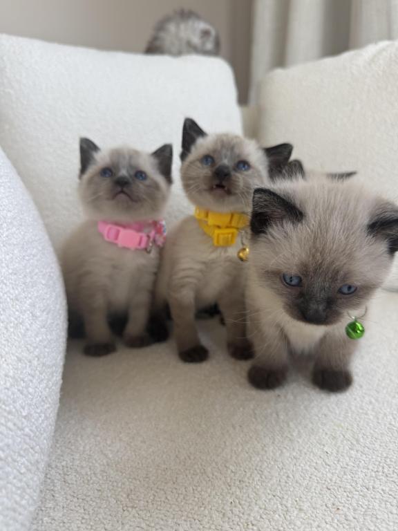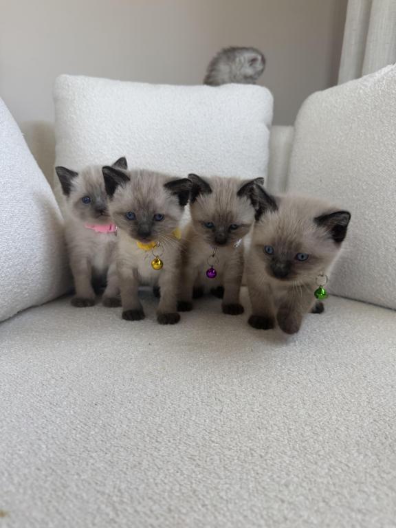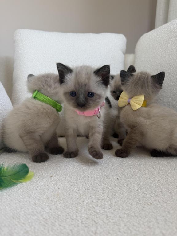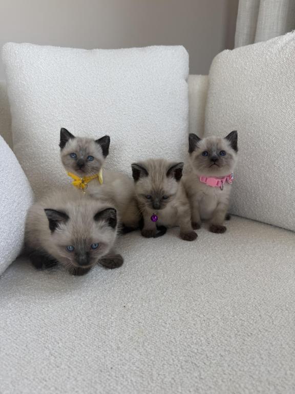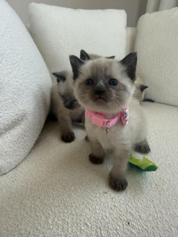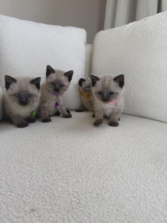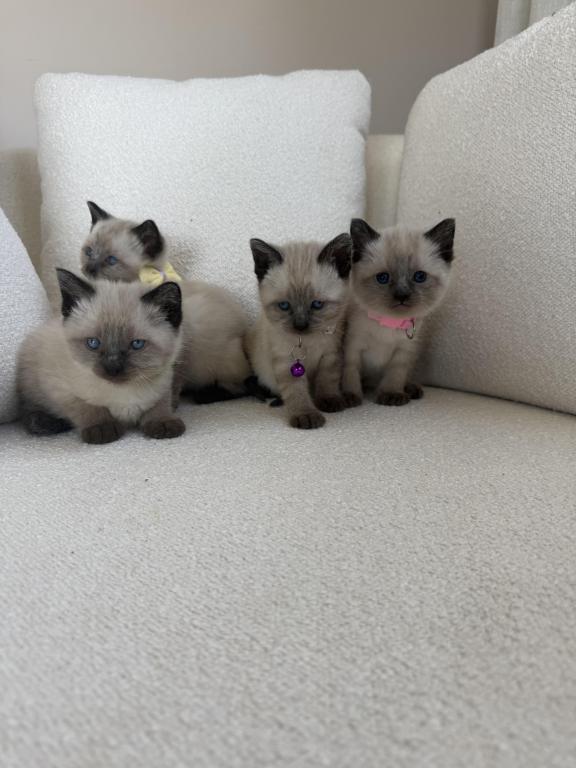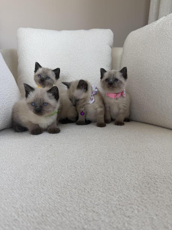 pure breed siamese kittens, two girls two boys available, blue eyes, home raised with small kids and dogs, will be dewormed and vaccinated and fully litter box trained leaving us, ready end of april, both parents are pure breed siamese and i have them, deposit of 100$ to reserve kitten, rest paid by pick up day, located barrington il, video call possible
