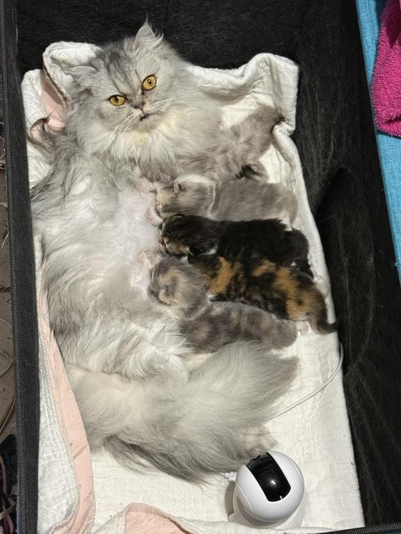 Frank is a handsome Tabby. He is just starting to open his eyes. His personality will be developing over the next several weeks. He has 3 sweet sisters to keep him busy!