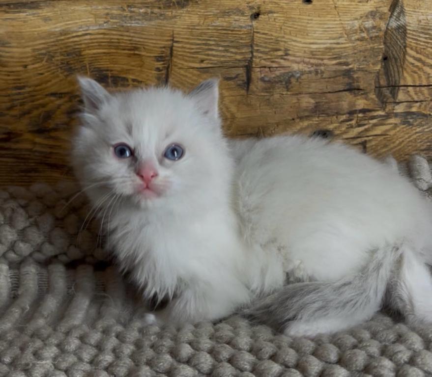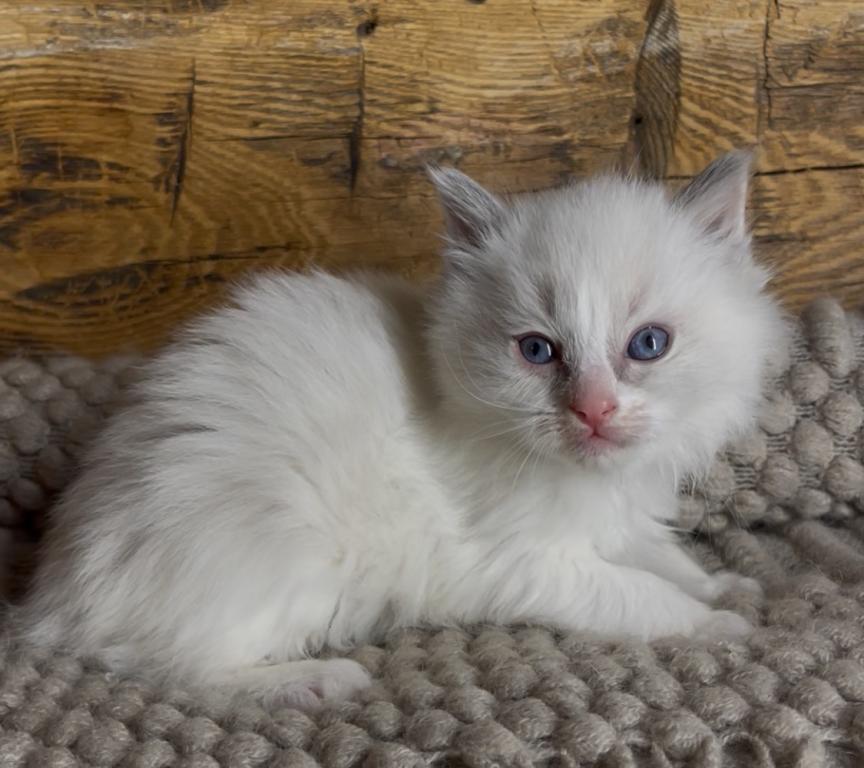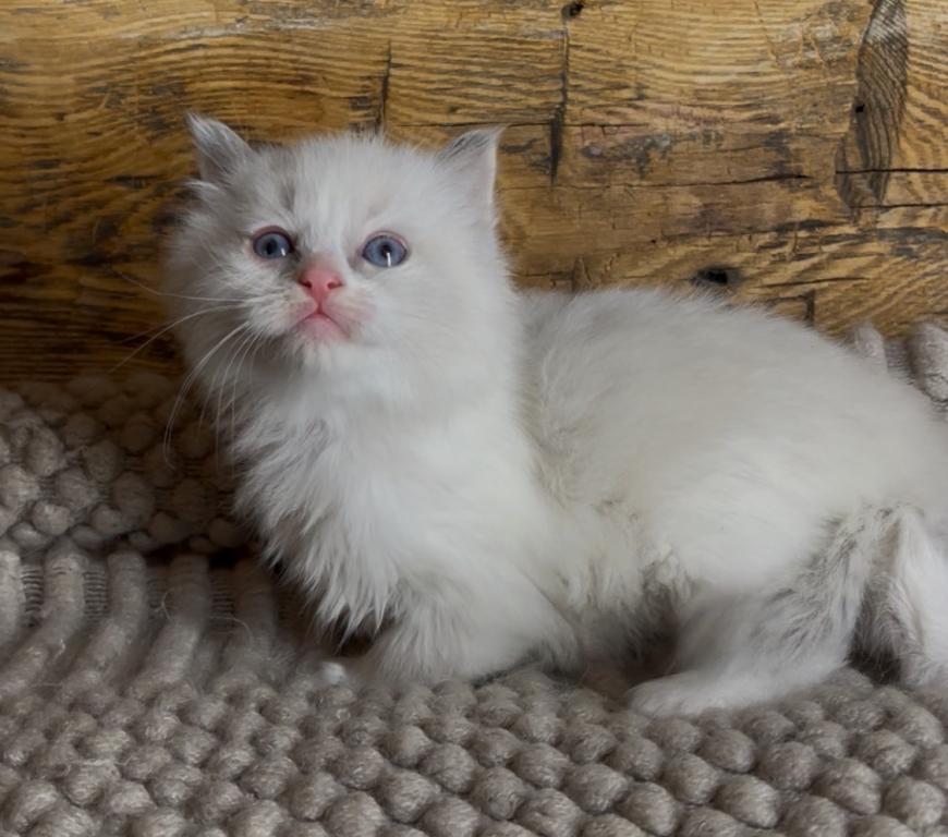 Classic Ragdoll personality—gentle, affectionate, and very relaxed. These kittens are extremely mellow and love to be held (they’ll just lay in your arms).