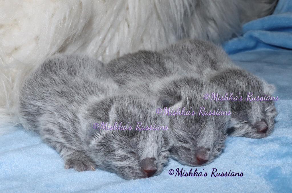 We have kittens coming, but the wait list fills quickly. Please visit our website www.mishkasrussians.com. The picture is of a prior litter. There is a litter coming in December. We breed Russian Blue as well as White. Please contact us for availability. Kittens receive at least 2 core vaccinations prior to leaving, are wormed at least twice also, no fleas, genetic health guarantee, Leukemia and FIV negative. Everything is in writing; Sample baggie of food and blanket accompany the kitten to help with transition. Russians are known for their level of intelligence and affection, bonding closely to their family as well as health. They can live into their 20's. They are an extremely intelligent, minimally shedding breed. The Russian has been found to have lower allergen levels than other cats, although it is important to note no cat is allergy free. This makes them a popular choice for those with allergies. I always like to discuss this in depth with those who are allergic to cats, so you are aware of factual information. We are located just west of Springfield Ohio. We breed TICA registered Russian Blue, White, Black and Blue Point kittens. All of our kittens are bred here. We do not import kittens from other countries to resell. Our goal is to educate the general public about the breed; to work diligently in order to keep the Russian White from dying out in this country; to help those looking for kittens know what to look for and what questions to ask, and to further the breed by breeding beautiful, healthy kittens. Fee applies. If interested, please send a message with your number and best time to call.