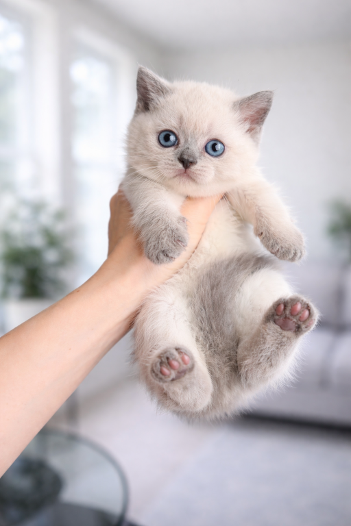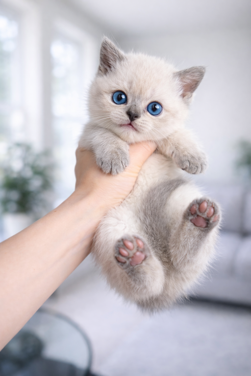 Stunning blue point girl with crystal blue eyes and a beautifully soft, plush coat. Her gentle expression, round features, and balanced structure give her a classic, high-quality look.