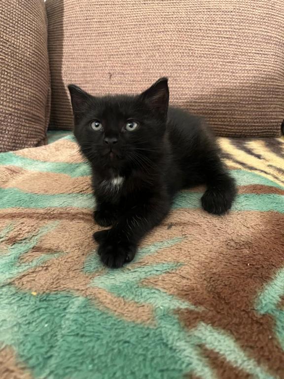 Very energetic kittens, they are shy at the beginning, but become very fun once they warm up to you. Two of the kittens have tails. One of the three kittens that don't have a tail has a white spot on his neck and his belly. All five are boys. Call or text me at (413)273-4106.