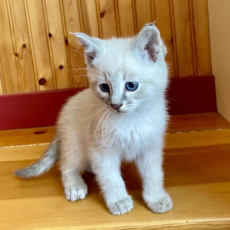 We have a short haired blue lynx point kitten looking for a good home. Romeo is about eight weeks old, born on Valentine's Day. He has grown up with children and is friendly and playful. This kitten is not purebred, but has beautiful blue eyes he will keep as an adult. We are asking a four hundred rehoming fee in cash. A phone number can be helpful for coordinating. Thanks!