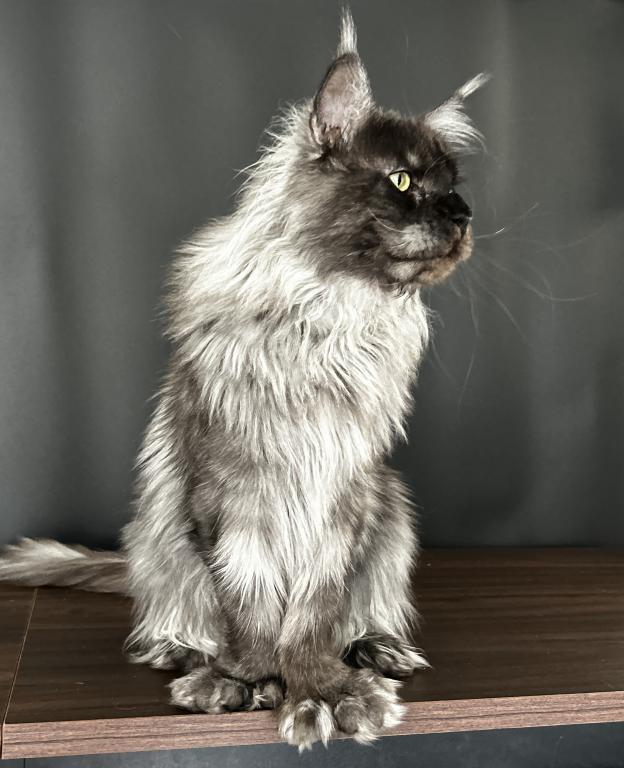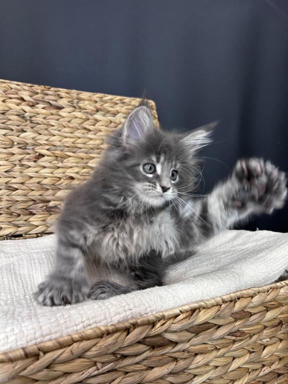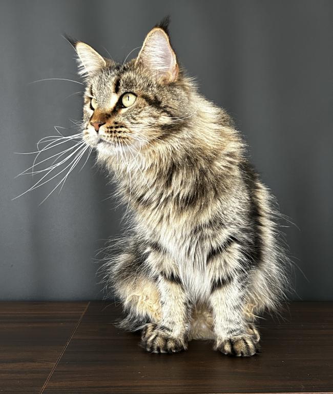 Beautiful polydactyl (extra toes) female Maine Coon kitten looking for her forever home.