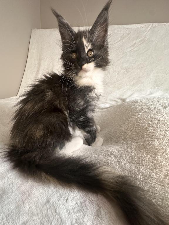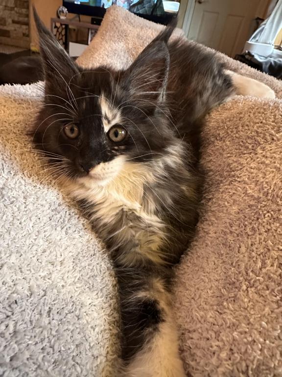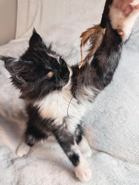 Tulsa is a curious funny kitten who loves to play. When she is tired from her day adventures she enjoys quality snuggle time. She is using scratching post and litter box and also even brave enough to jump into our big automatic litter box. She is raised on our farm with other cats and our two dogs. We raise confident loving cat for families to enjoy of lifetime with. Text or email for more information