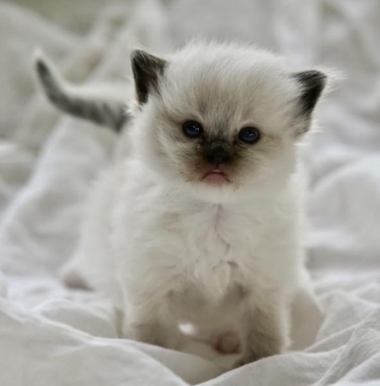 Maple is a sweet and chubby mitted seal point ragdoll. She loves playing and snuggling with her humans and siblings. Maple is best kept inside the house but will enjoy catching some fresh air in a enclosed outdoor area or catio. Maple will be ready to go to her new home in mid May. Maple has a super duper sweet and affectionate mitted seal mommy named Echo and an extra floppy, sweet and mushy blue bicolor daddy named Blue. Blue has a polish mother and a Turkish father.
