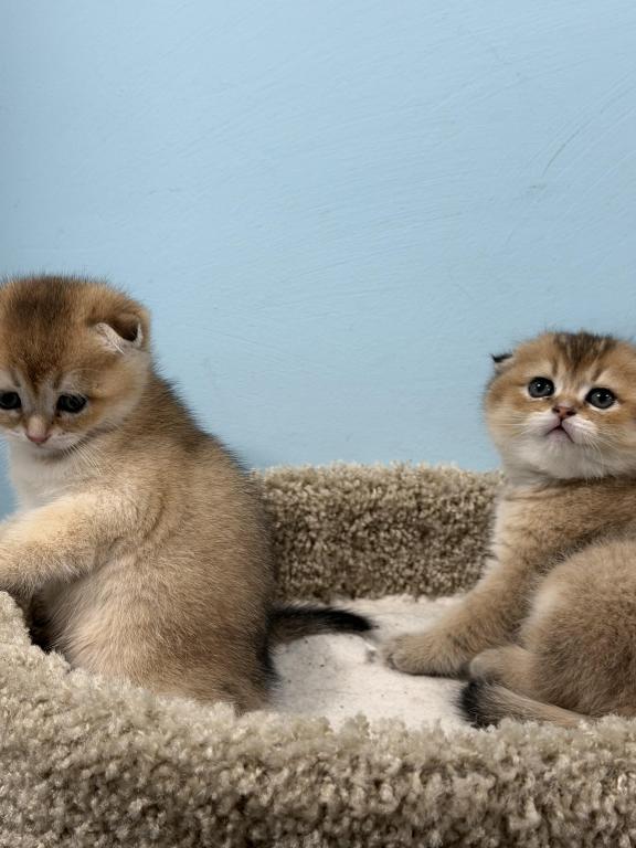 This special trio includes two males and one female, born on February 20th 2026. Includes one Silver Shaded male and two Golden Shaded kittens (one male, one female), all with adorable folded ears. Sweet, affectionate, and well-socialized, raised in a loving home and used to everyday life. Beautiful round faces, plush coats, and perfect companion personalities. Contact Svetlana (253) 508-3422 for more info.