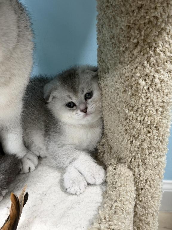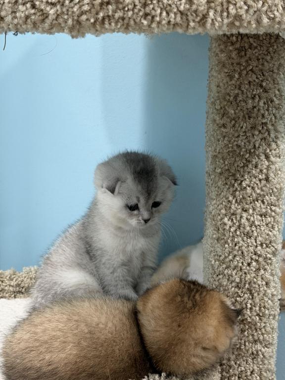 I’m excited to introduce this adorable litter of Scottish Fold mix with British Shorthair, raised with love and care. They come from a strong, healthy pedigree and have been well-socialized from the start. To give you peace of mind, I offer a 14-day health guarantee: if any concerns arise, I will provide a full refund or an exchange for a kitten of equal value.