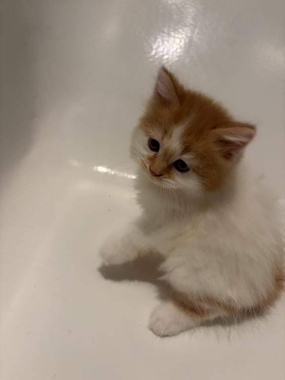 super cutie pie orange and wite persian kitty. he loves to snuggle and playes all day. vaccinated and dewormed