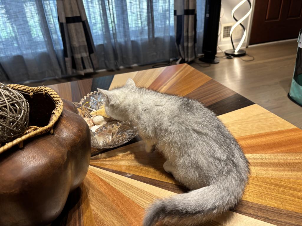 Silver Blue Shaded shorthair male short leg Munchkin kitten. Kevin is Microchipped, neutered, has 2 sets of FVRCP vaccines and 2 dewormings. This beautiful baby is litter box trained and is ready to leave immediately. He will come with a carrier and sample of food and all his medical paperwork.
