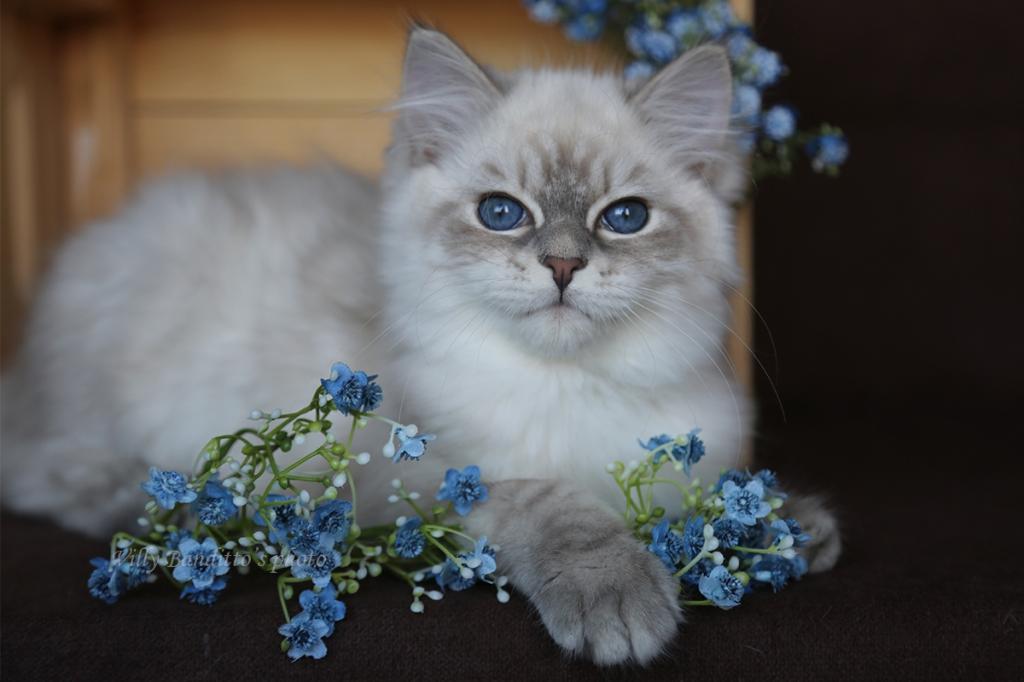 Purebred Siberian female of blue tabby point colour is looking for her forever home. Very affectionate and human oriented. Very sweet and playful girl, kind with kids and dogs, friendly and communicative. She is ready to move to new home already. She will be spayed if will be sold as a pet.