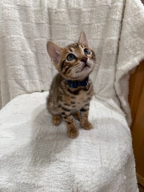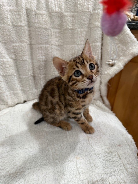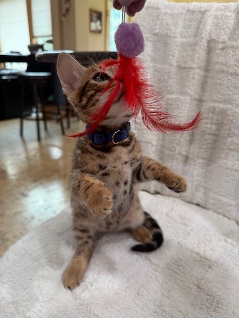 Blue is a big boy and likes to cuddle. He loves to play with his siblings but is also does great playing by himself. Would be a great addition to any family.