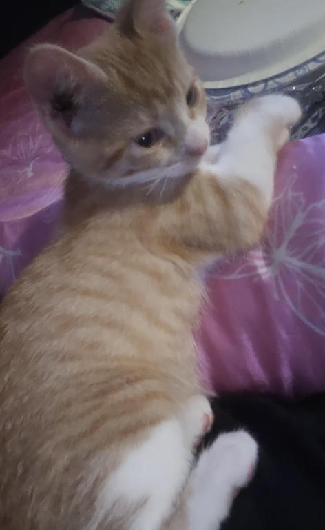 Very energetic, cute, playful male. He is a 4 month old domestic cat. We want him to go to a new caring family because of a allergy problem that we developed. Not neutered; he can be used for breeding in the future.