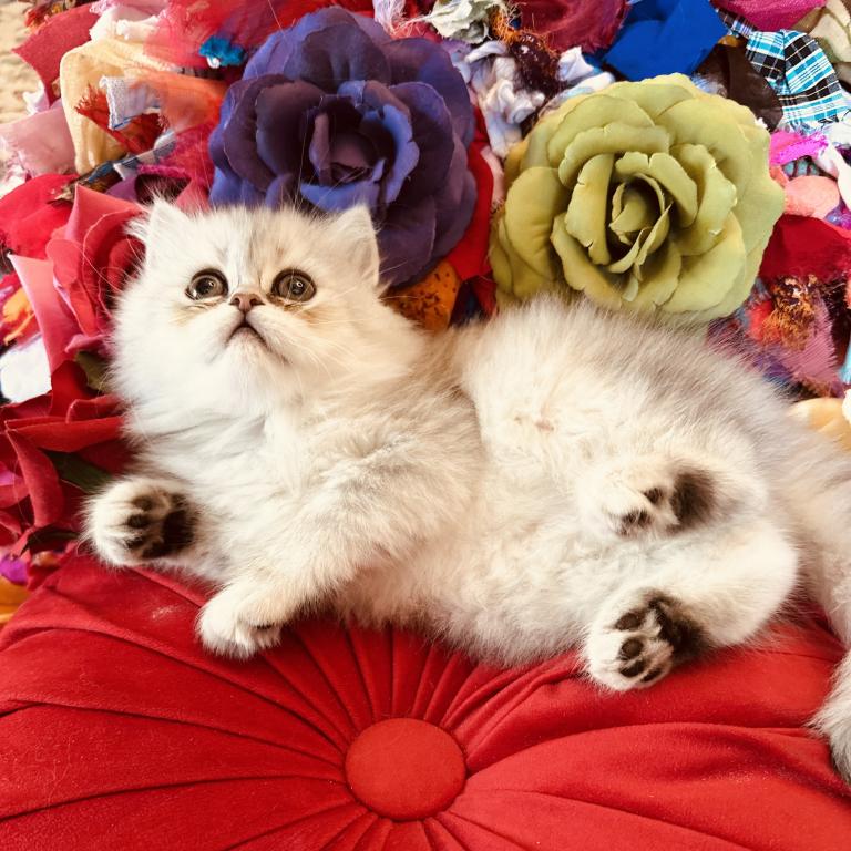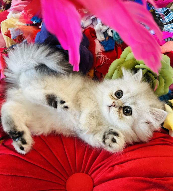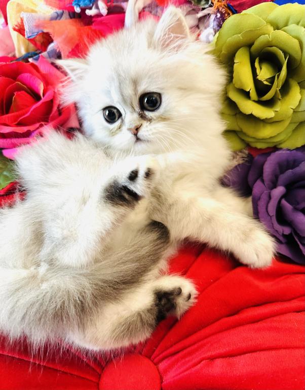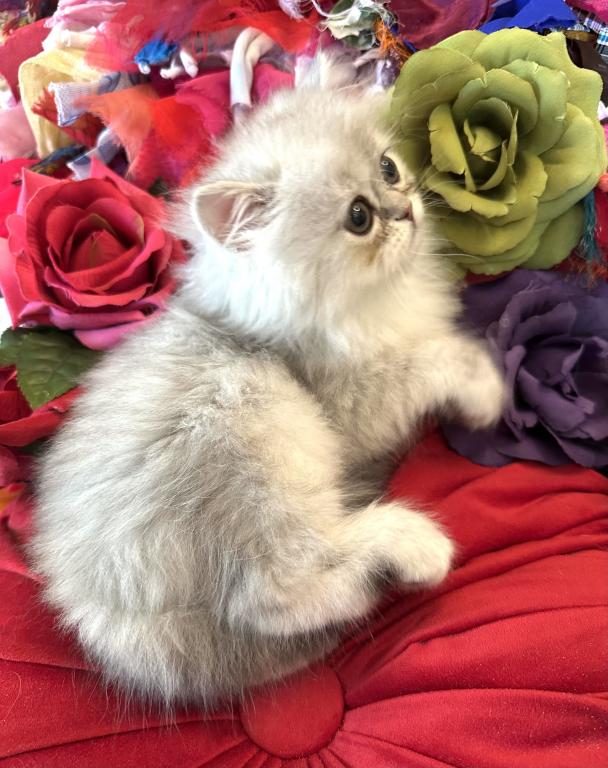 Prince Loverboy will have all his shots when he goes to his Forever Family. He is Silver Chinchilla Coloring. He loves to be with you. His eyes are always curious about everything going on. He already uses the litter box and loves to eat Dr. Marty’s Food.