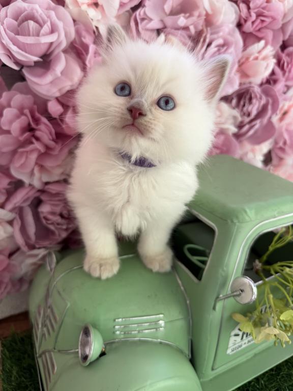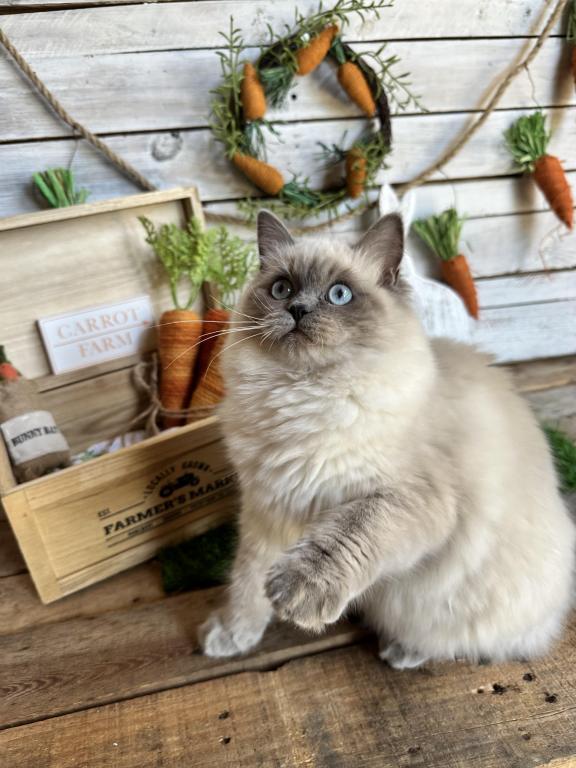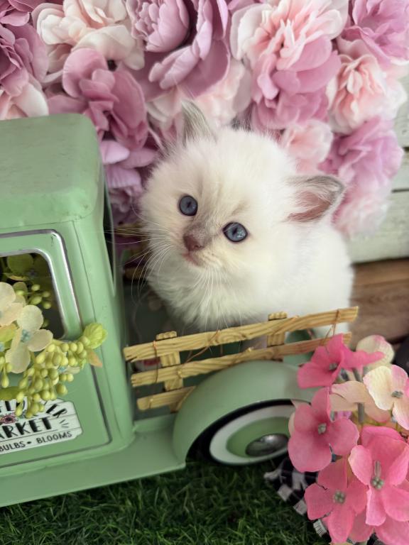 We have been blessed with a beautiful Cherubim/Ragdoll litter! Dad is Thorn a lilac point mink Cherubim/Ragdoll and Mama is Peppermint, our homegrown blue point Mink Cherubim/Ragdoll! There is 2 girls & 3 boys that are currently available in this litter, they will be ready for their forever homes in late May! Both parents are TICA registered. Kittens will come with Florida health certificate and 30 days of Trupanion insurance. Kittens are raised in our smoke free home with dogs and young children with plenty of socialization and enrichment. Please check out our Facebook page Sterling Sky’s Dollhouse or website below, thanks for browsing!