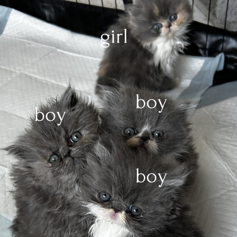The kitten comes with first set of shots/dewormer, birth certificate and kitty starter pack. These kitties are available for pick up on April 18, 2026.