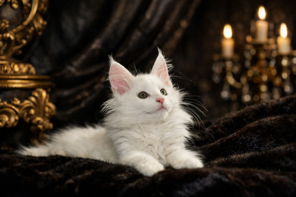 A refined European-type Maine Coon with strong structure, elegant expression, and balanced temperament.