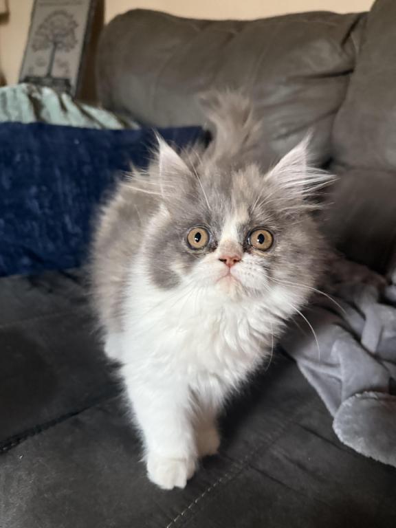 This little girl is a calico sweetheart with the cutest round face. She loves to play and run around. She's very curious and active!