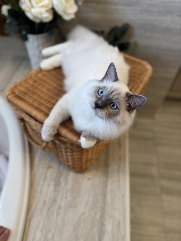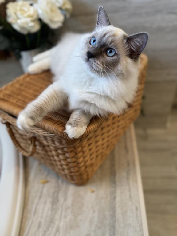 Blue is available for stud services! He has the best personality of any cat I've ever owned and could be the spokesperson for "why to buy a ragdoll". Current on all his vet visits and shots, he is the picture of health. He has produced a litter of gorgeous kittens already and is ready for more! Please contact for more info.