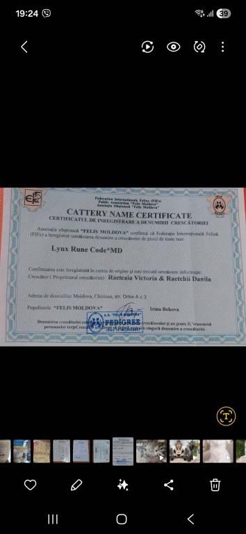 Official pedigree (FIFe registered)