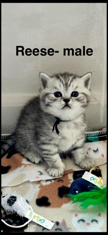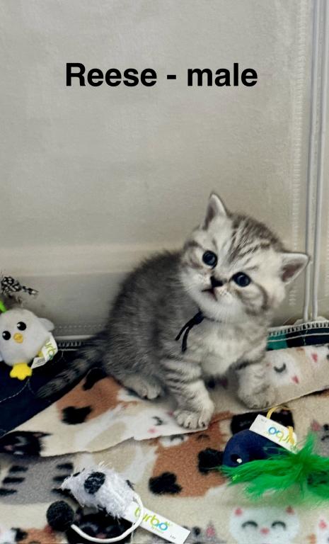Male BRI ns 23 - black silver mackerel tabby british shorthair kitten from our beautiful spring litter of four born March 10th! Please message for additional pics and videos. Serious inquiries with safe and loving homes only please. Ask me about self pickup discount. Ready to go home around or soon after Mother’s Day!