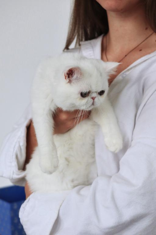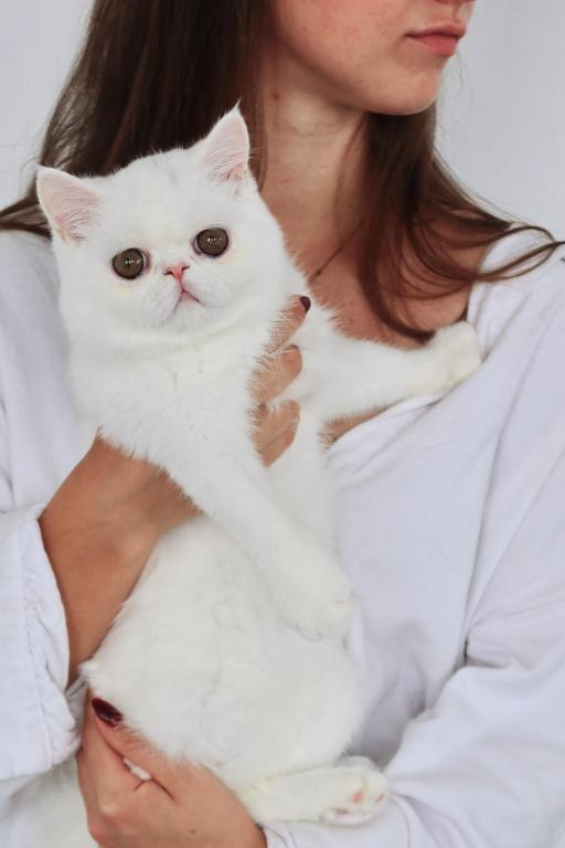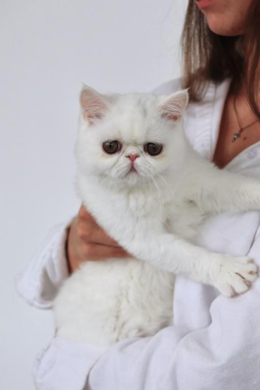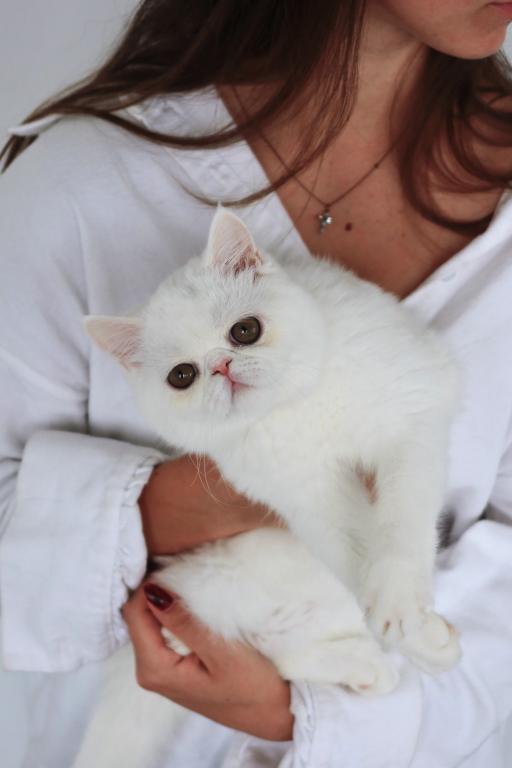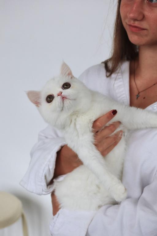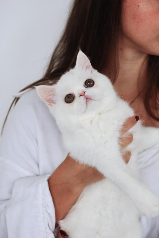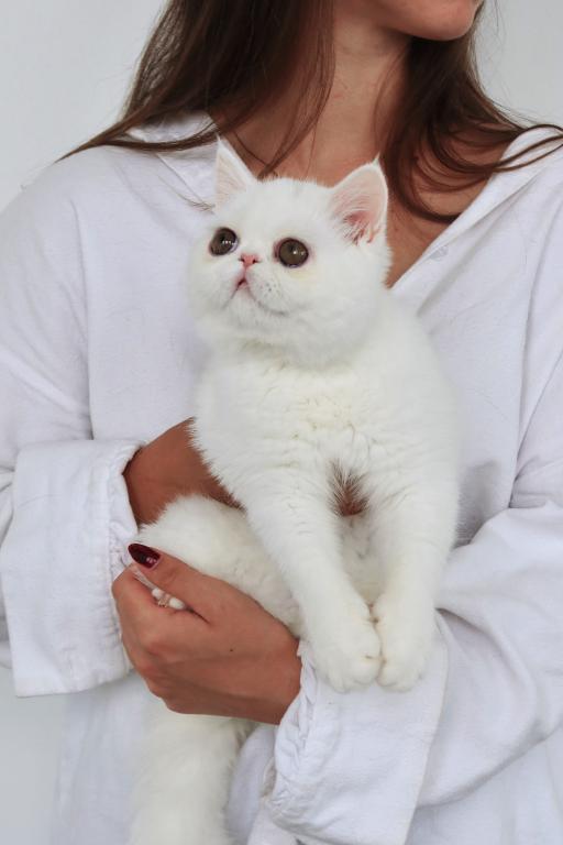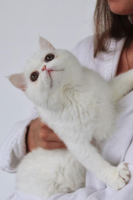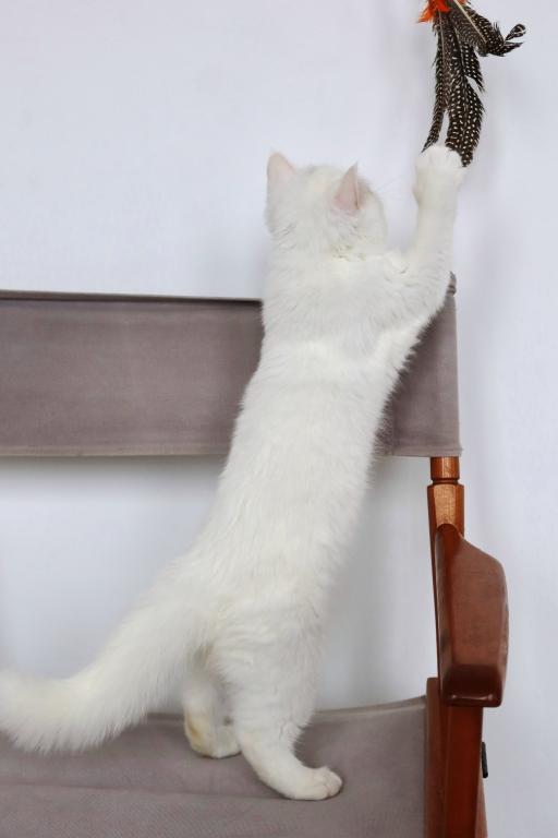 Available is a beautiful young solid white female with striking copper eyes and a luxurious plush coat. She is TICA registered and has proudly earned her Championship title, reflecting her outstanding quality and structure.