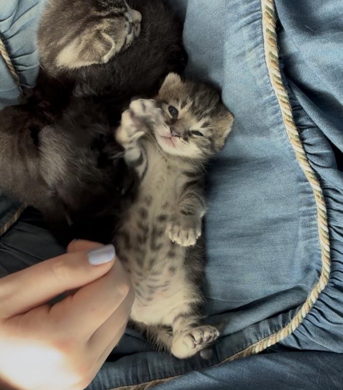 Topaz is the shorthair daughter of an unpapered Maine Coon and is herself a polydactyl. She is a clever, slighty naughty girl who very much enjoys getting to live in the kitten room (with its plentiful food, sunny windows, and frequent lovings) while she raises a litter. She's high energy, though, and prefers the outdoors when she isn't being a mama! She has 4 little girls in this litter. This listing is for Tiger Lily. She’s a beautiful dark silver/black classic tabby with 4 polydactyl feet (quite unusual). Her front legs show a marked double-jointed flexibility that looks alarming at times. When she’s relaxed, the right front paw, in particular, can rest at quite the angle. When she wants, too, though, she easily straightens it and waves it about. She is not distressed by it at all. The vet is not concerned about it, feeling that she will either outgrow it or not be bothered by it in adulthood. She is very patient and calm when being held, and shows a soft, gentle nature. She is very responsive to stroking, arching into the pleasure of contact, and loves to lay on her back and wave her little legs around. Her personality traits very promising at such a young age! ———————-—————- Polydactyl babies are $250. Reservation fees for polydactyl babies are $100 each, and are refundable up through the end of week 5. Once a baby turns 6 weeks old, the reservation fee is not refunded if you change your mind. We want to find good homes for our babies, and that is best done early - thus our logic. No reservation fee is required if you wait to choose your kitten until your adoption day, of course. All monies collected are used to care for the cats of our private sanctuary. Donations are welcome. ————————— If you live too far away to drive to us, I am willing to drive the 150 miles round trip to the Green Bay airport to meet you (rather than you having to rent a car to come up here). I do ask for an additional $50 donation to our sanctuary to cover fuel/vehicle/time, though.