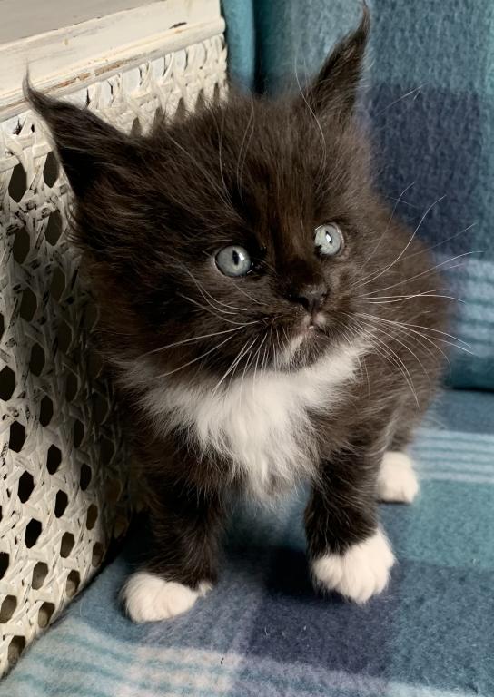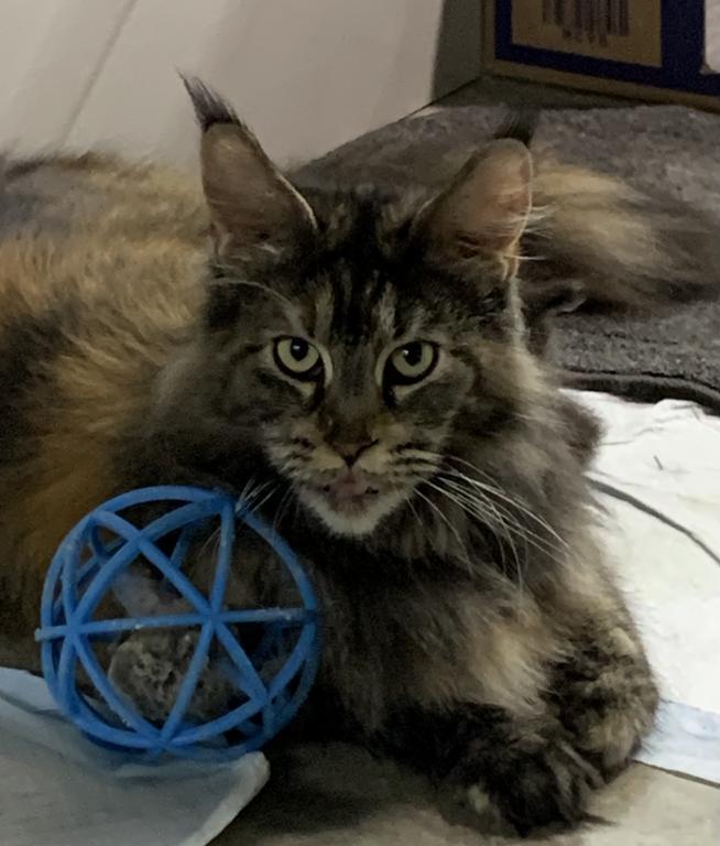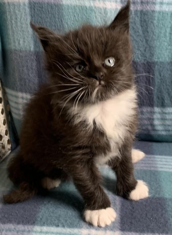 Super cute black/white female. She is TICA registered. She is out of euro import lines. She will be ready the end of May. Parents are health tested clear. Accepting deposit now to hold until ready. Visit my Facebook page at briarlanemainecoons. Webpage is www.briarlanemainecoons.com.