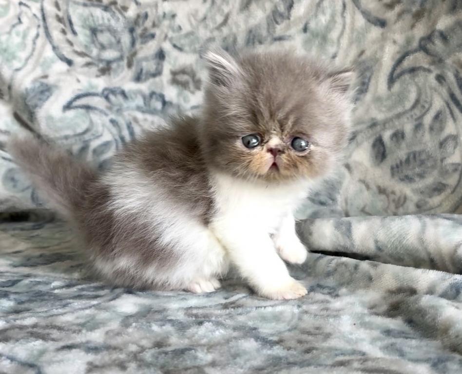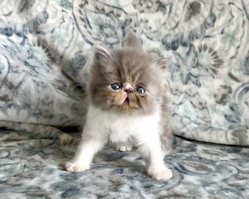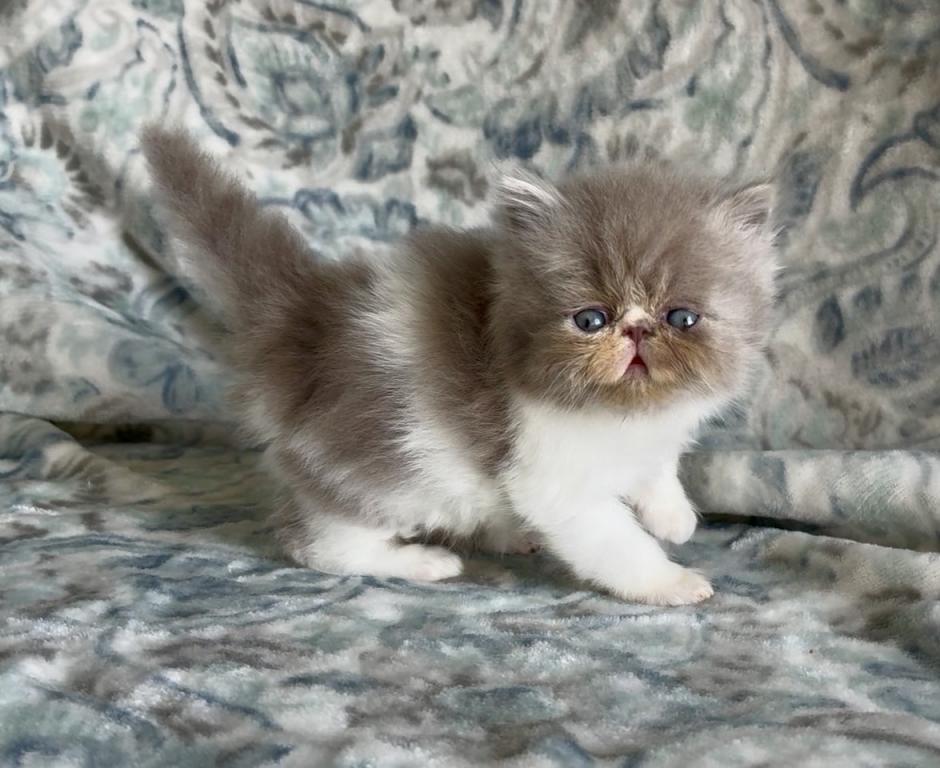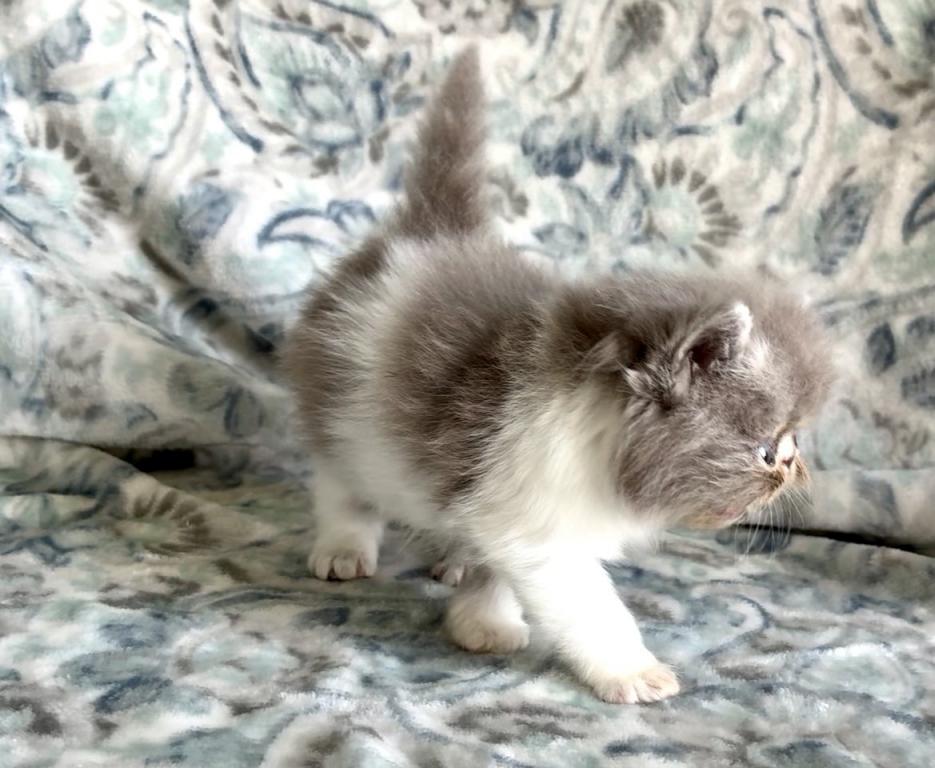 This lilac and white boy boy is sunshine in a kitten. He is sweet and playful and a ball of furry happiness. His mom is lilac and white like he is, the most affectionate cat we have, and his father is equally as happy and cuddly. He is a red and white that carries chocolate. This little boy would make a wonderful pet or even the possibility of a beautiful king for an approved cattery.